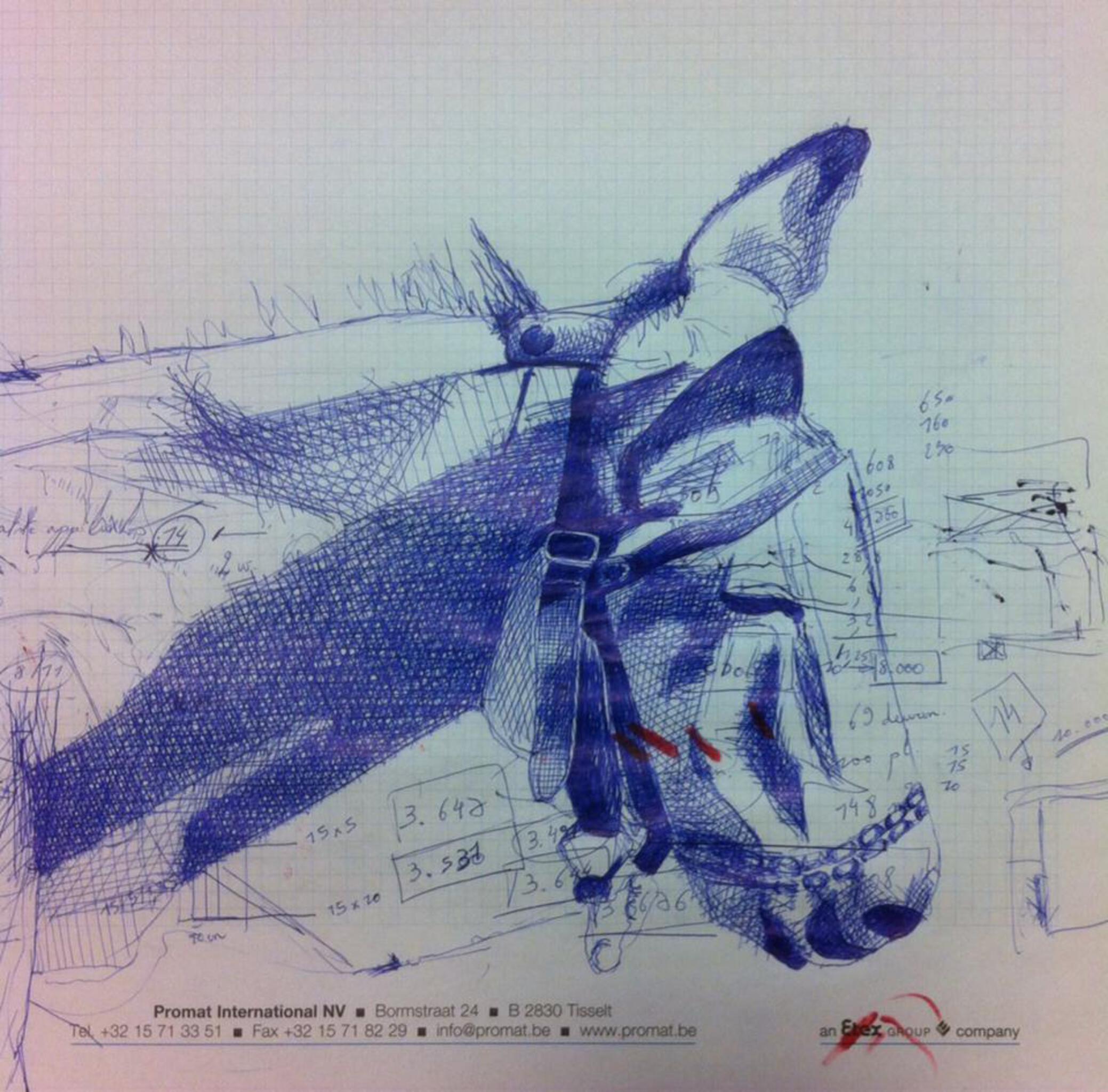 Koppig als een muilezel. Doch dikwijls krachtig en moedig als redder om zware lasten te dragen en te helpen. De werkende ezel, getekend op werk papier.