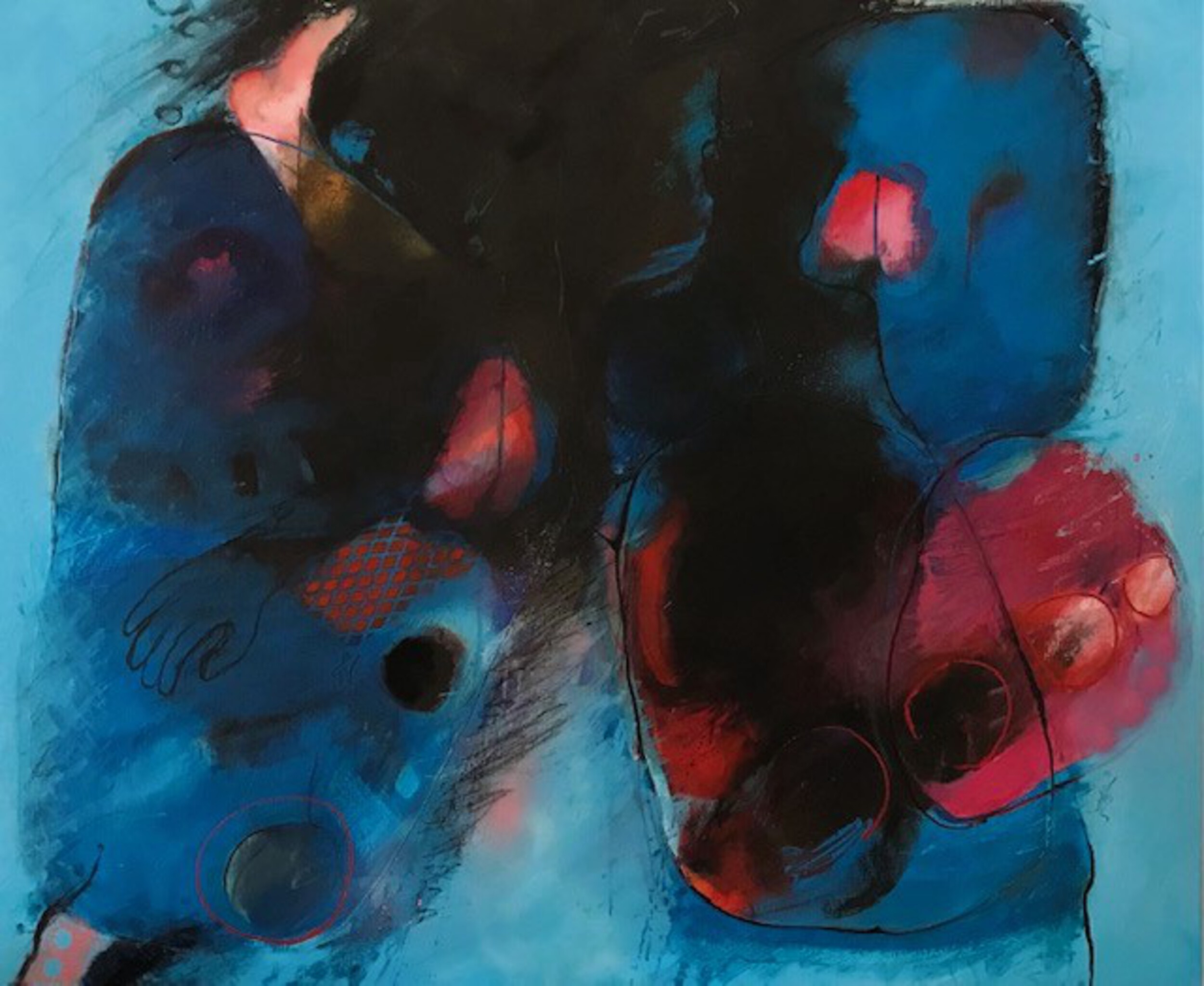 Abstract, expressief met iets figuratiefs. In ieder geval kleurrijk, spetterend en het knalt van het doek af. www.noortielens.nl