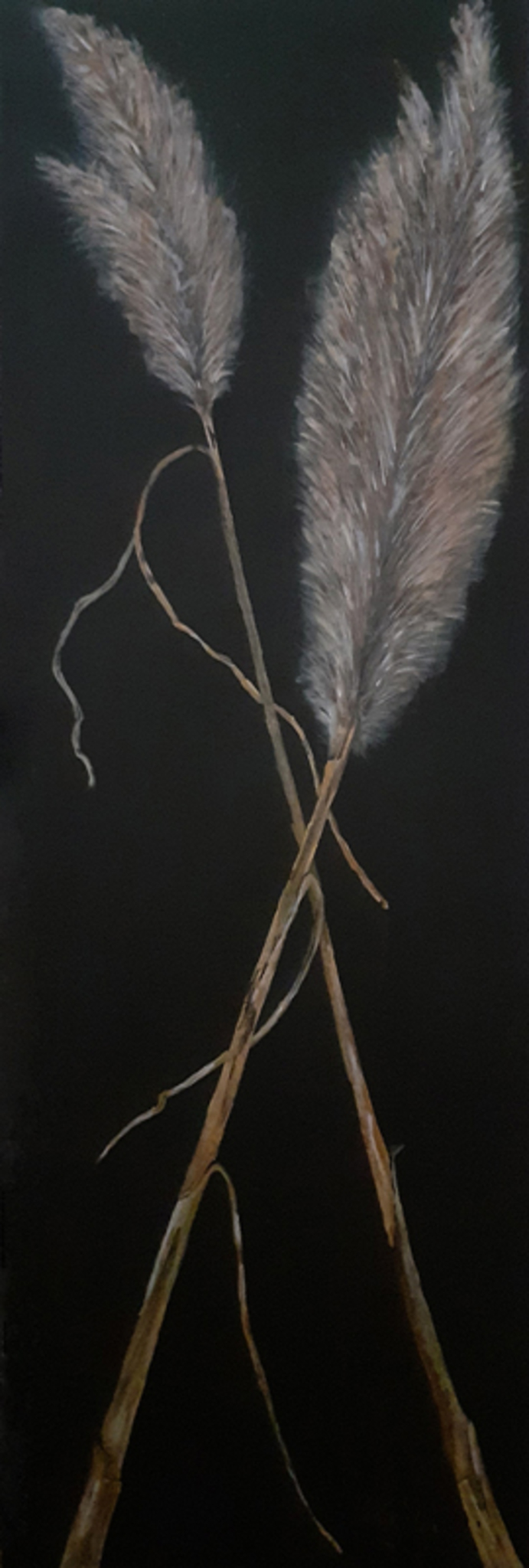Twee volle rietpluimen op een zwart vlak