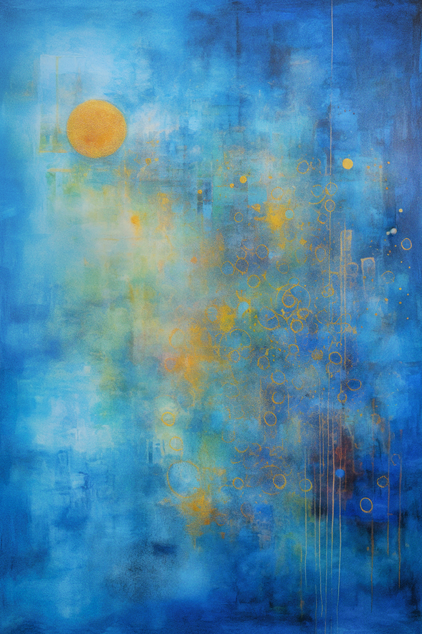 Abstract, Zachte kleuren en vervaagde natuurbeelden, mooie herinneringen, aan een nachtelijke sterrenhemel. De details werden bewust vervaagd om de nadruk te leggen op de emotie en herinnering aan het moment, eerder dan op een exacte weergave van de natuur. Herinnering aan de prachtige momenten in de natuur die ons kunnen kalmeren en inspireren, zelfs wanneer ze vervagen in de verte van onze herinneringen.