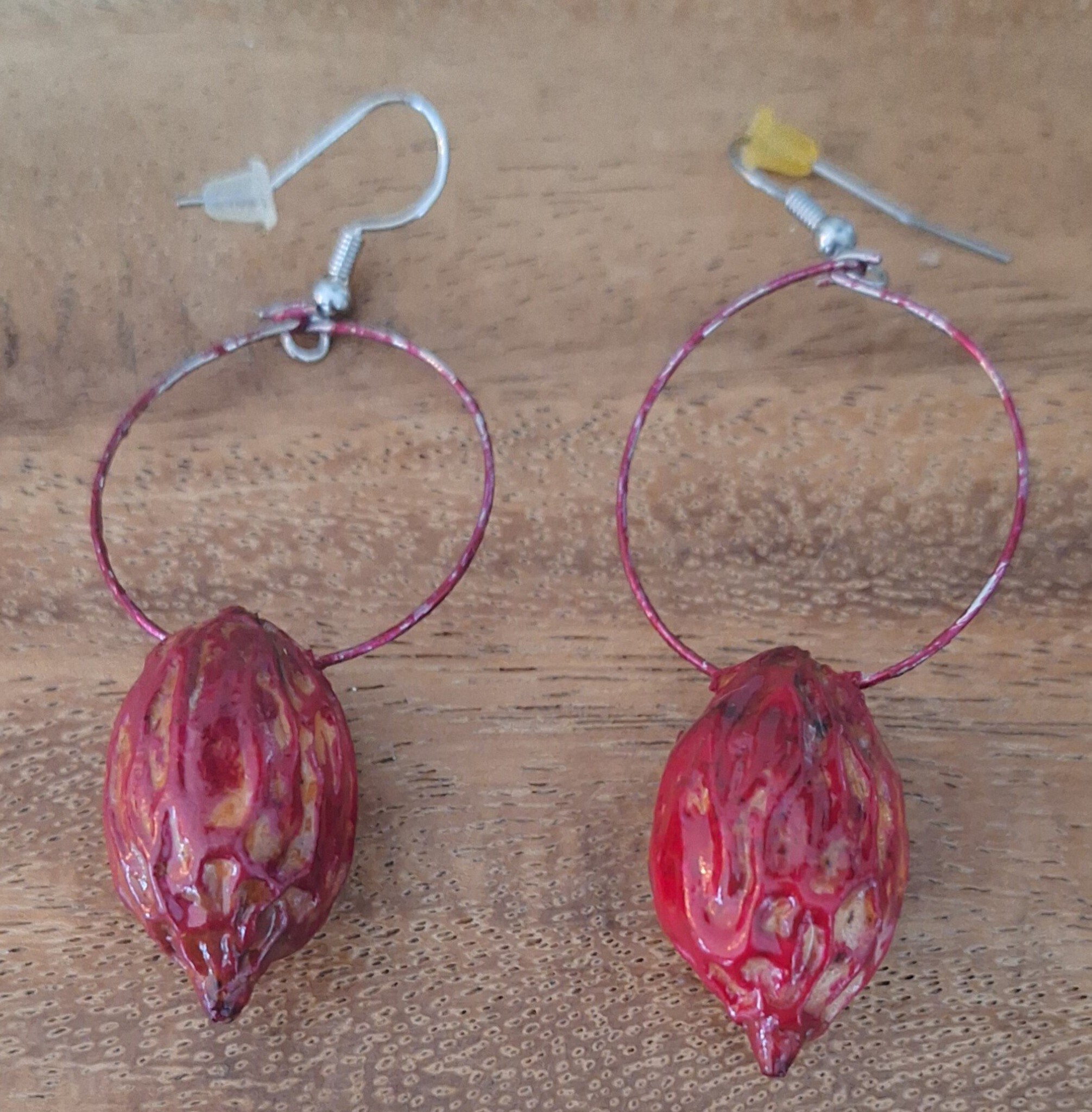 Oorsieraad uniek van natuurlijk materiaal rood