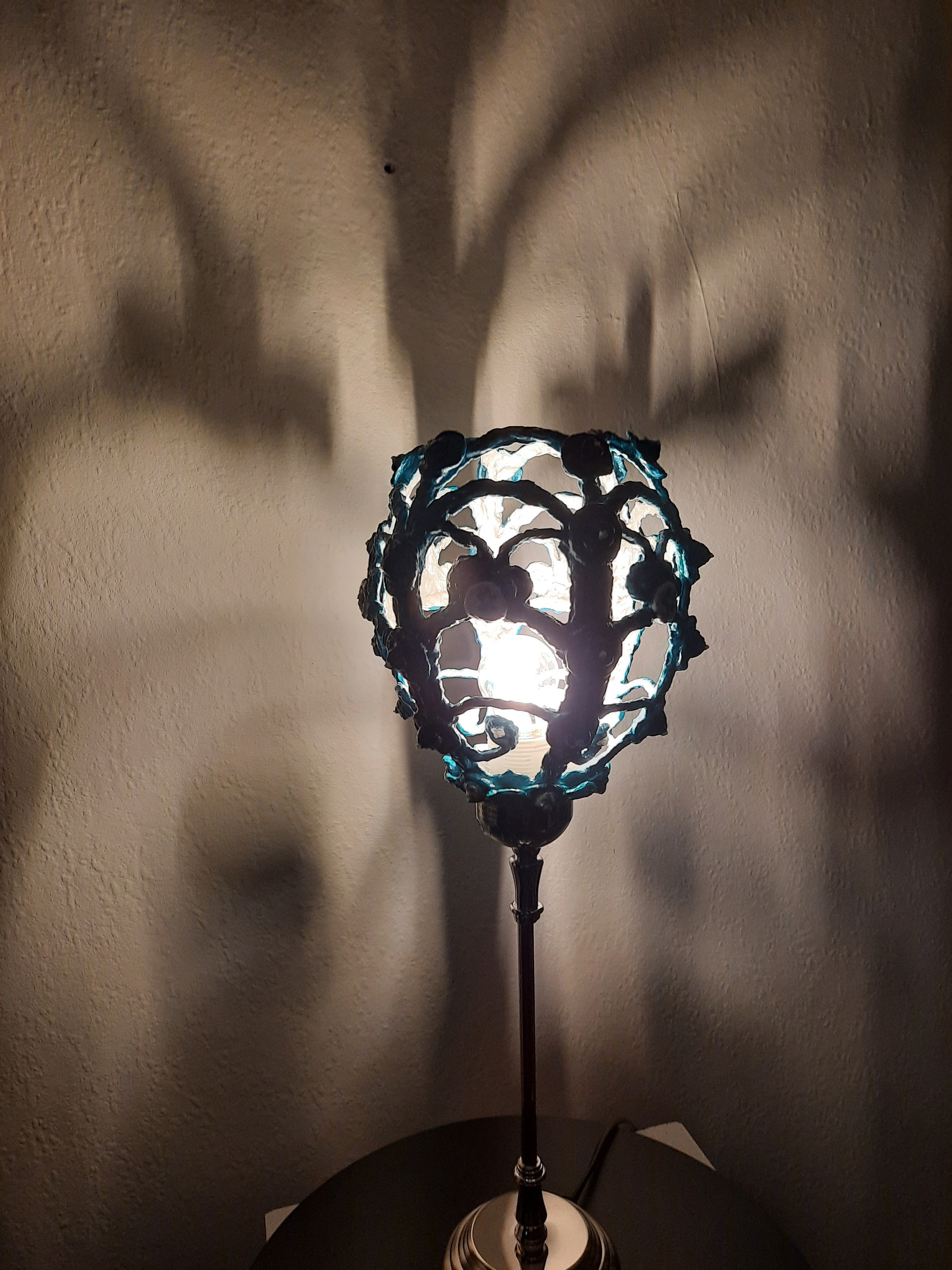 Turkoois Tafellamp Opengewerkte Lampenkap Schemerlamp Papier-maché Papier-mache