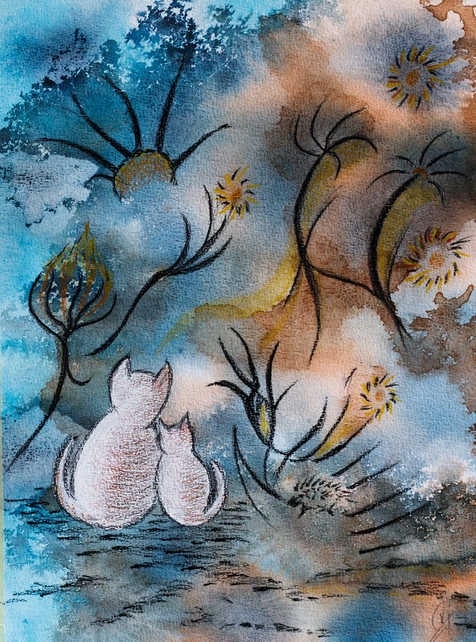 Een aquarellist die graag experimenteert. De meeste schilderijen vallen daarom onder mixed media op papier.