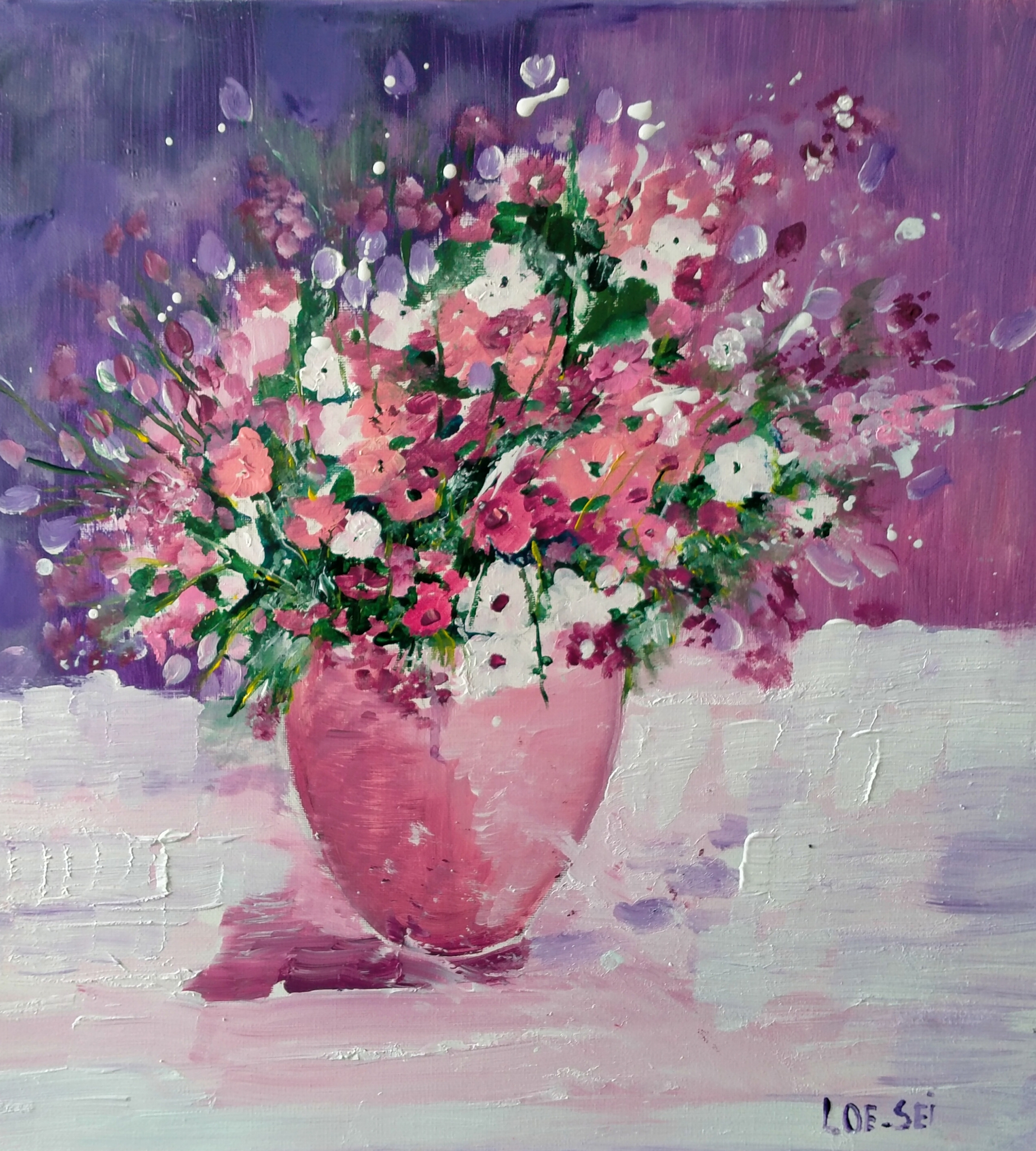 Loe-Sei schildert op grote doeken en heeft een kleurrijke, losse stijl. Het werk is impressionistisch te noemen. Zij is geboren in Eindhoven in 1947 . Grote doeken met vooral bloemen