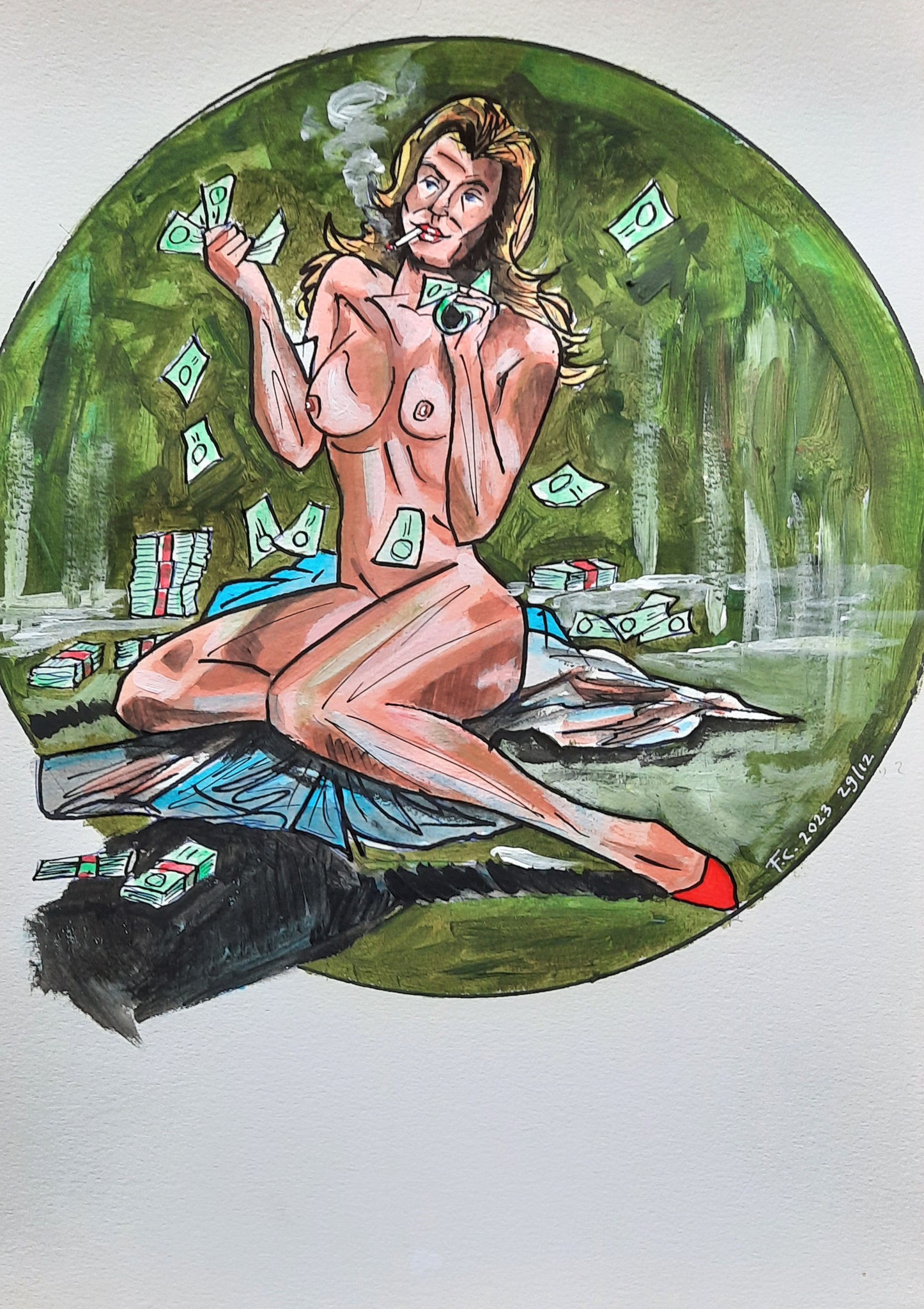 Vrouw Naakt Nude Blond Erotiek Retro Money Poison Pulpart Vintage Pulp Art