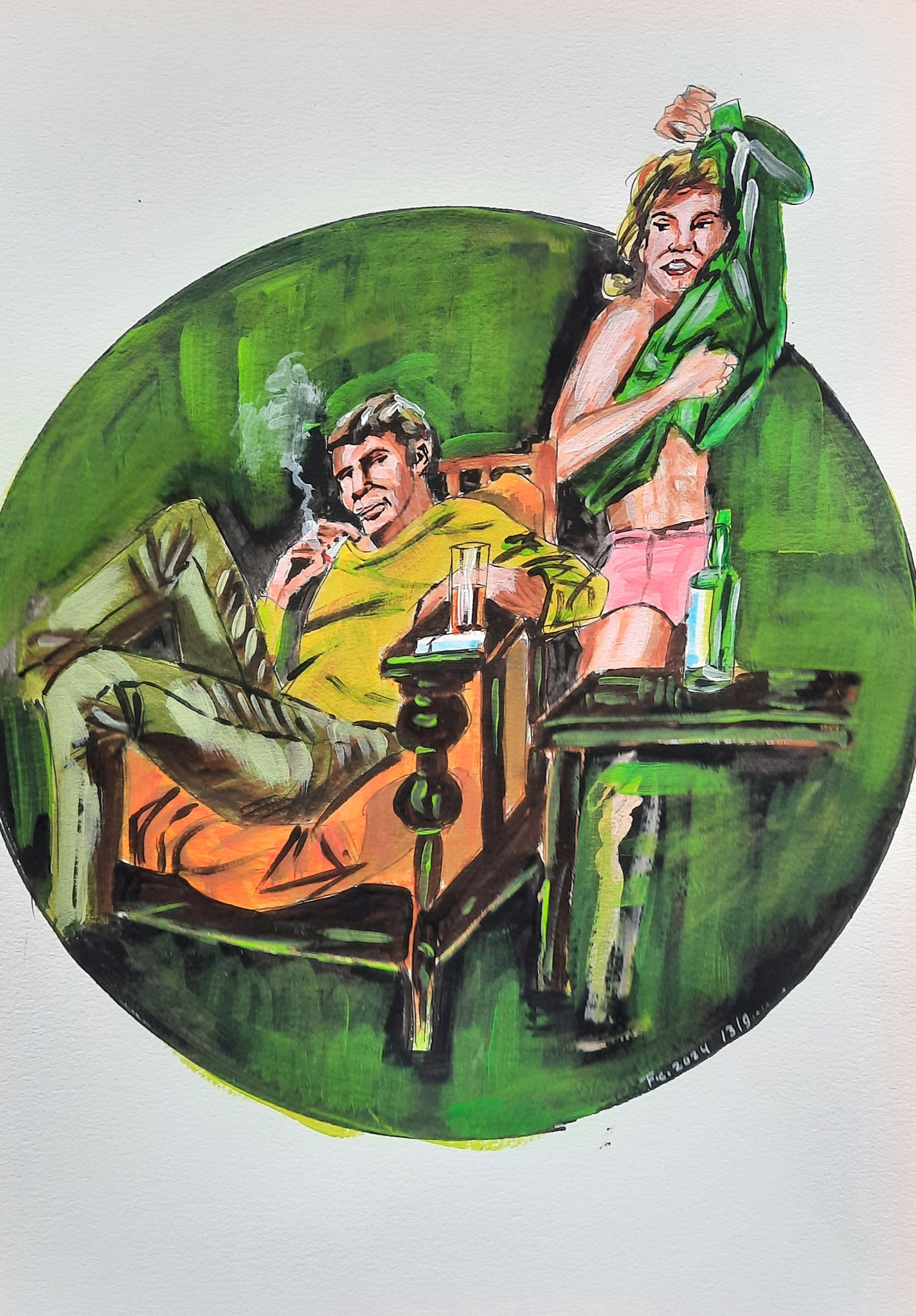 Man Art Woman Erotiek Retro Vintage Uitkleden Pulp Pulpart Undress