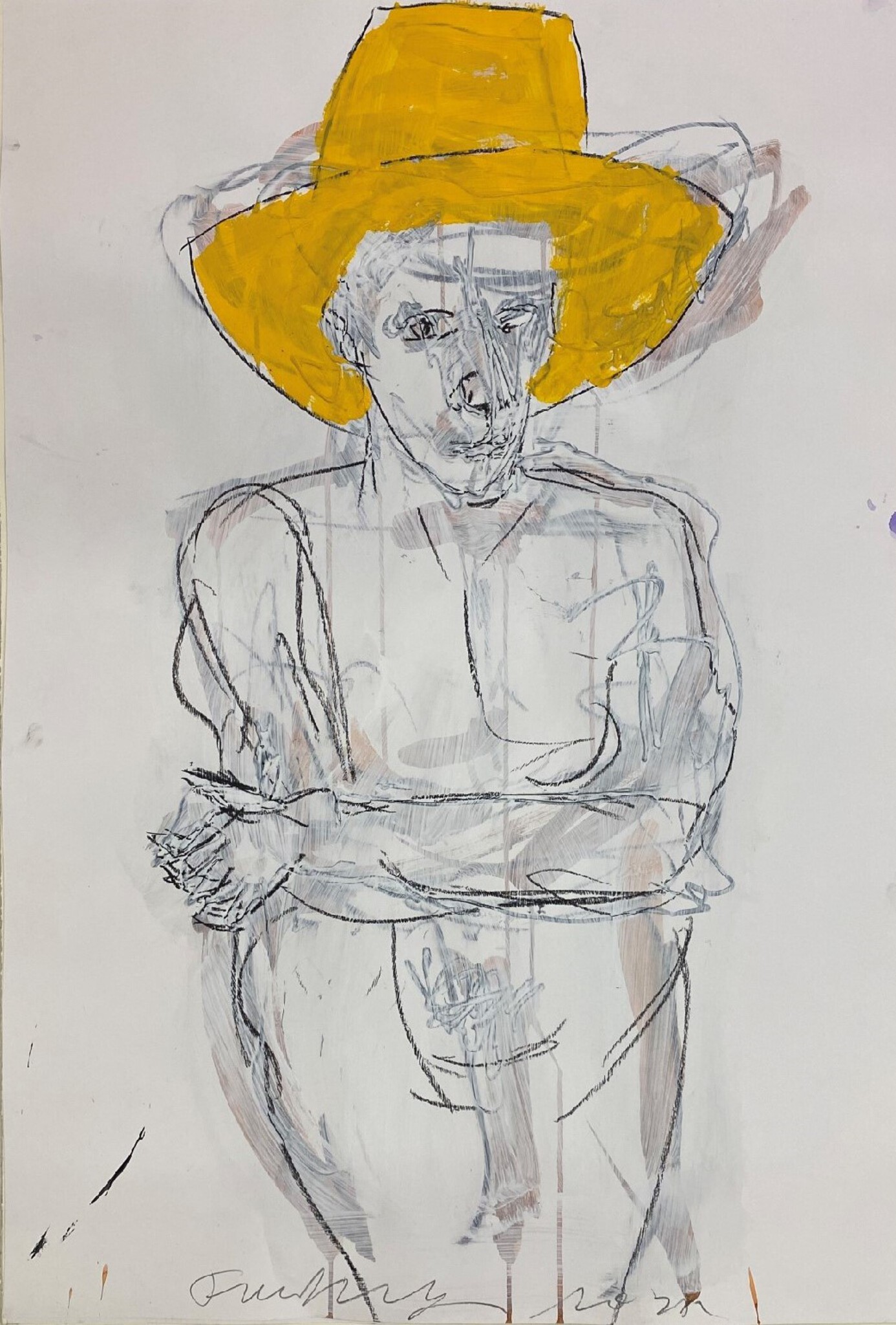 Portret gemaakt door Frans de Groot, gemengde techniek met krijt en acrylverf