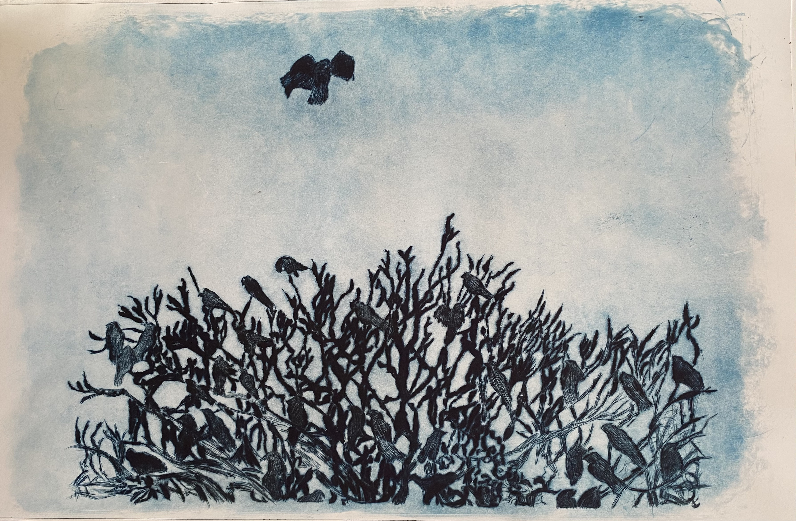 Marian Visser (Middelharnis, 1968) maakt etsen, litho's, lino's en tekeningen van (inheemse) dieren, mensen en bomen.