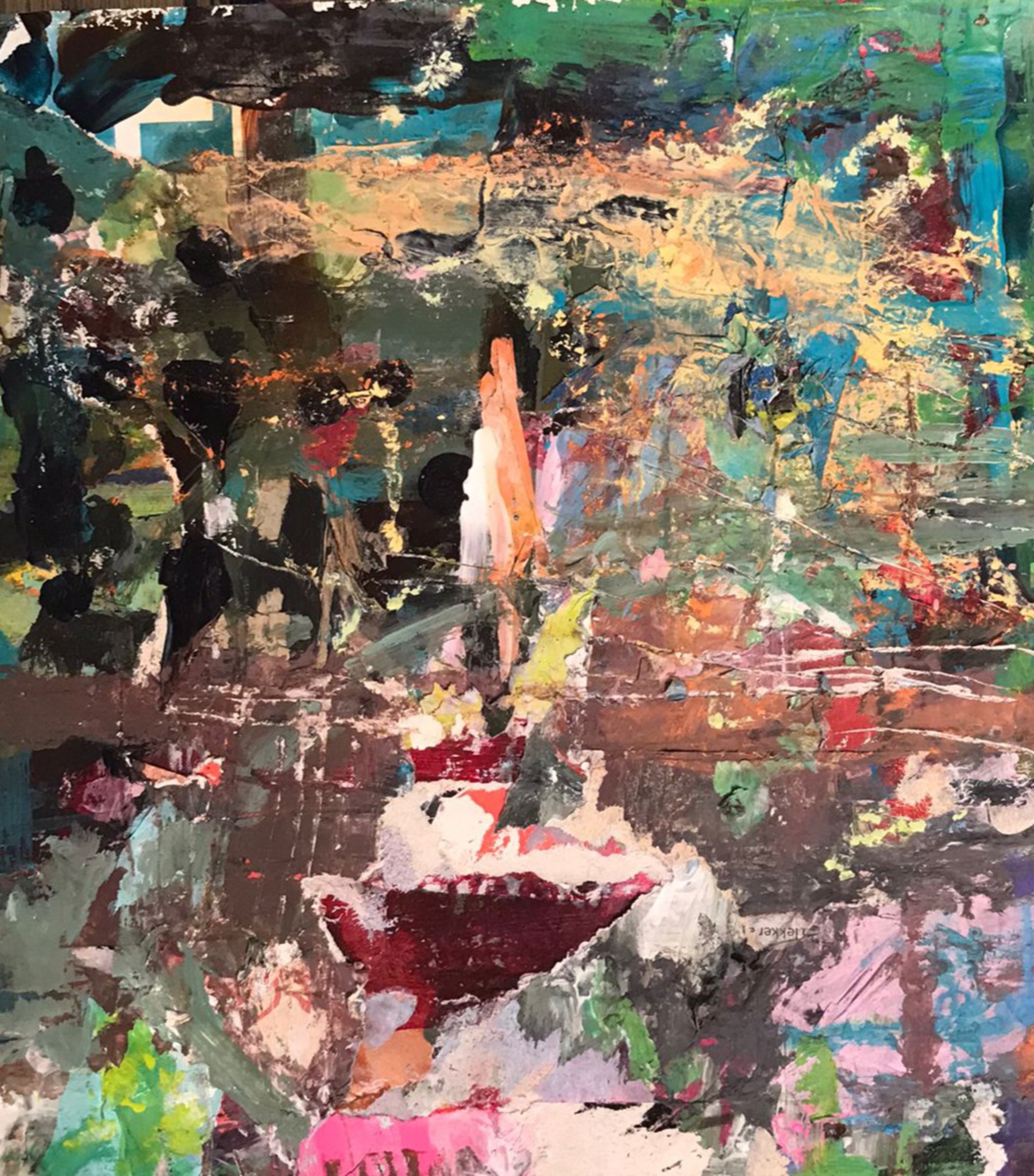 Ik ben Hanneke en heb 23 jaar in de Belgische Ardennen gewoond, waar ik een eigen mozaïek-atelier had. Toen ik in 2012 terugkwam naar Amsterdam, ben ik overgegaan op een andere creatieve werkvorm, met papier, verf, inkt en krijt, waarbij ik op een intuïtieve manier begin te experimenteren zonder te weten waar ik uitkom. Het gaat evenzeer om het proces en het plezier als om het uiteindelijke resultaat.