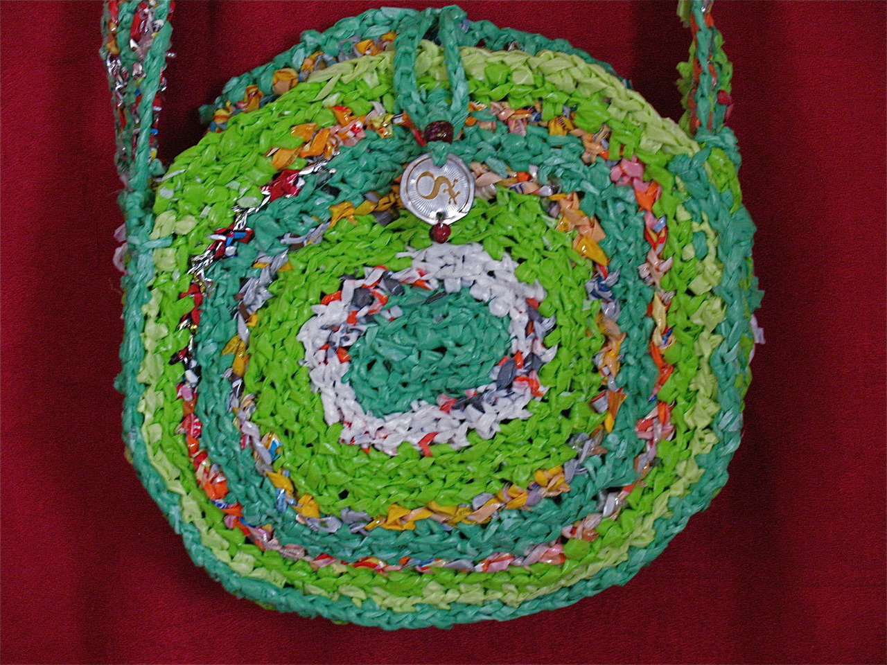Recycled Bottle Plastic Bag Gecko Cap Crochet Shoulder Purse Upcycled Repurposed