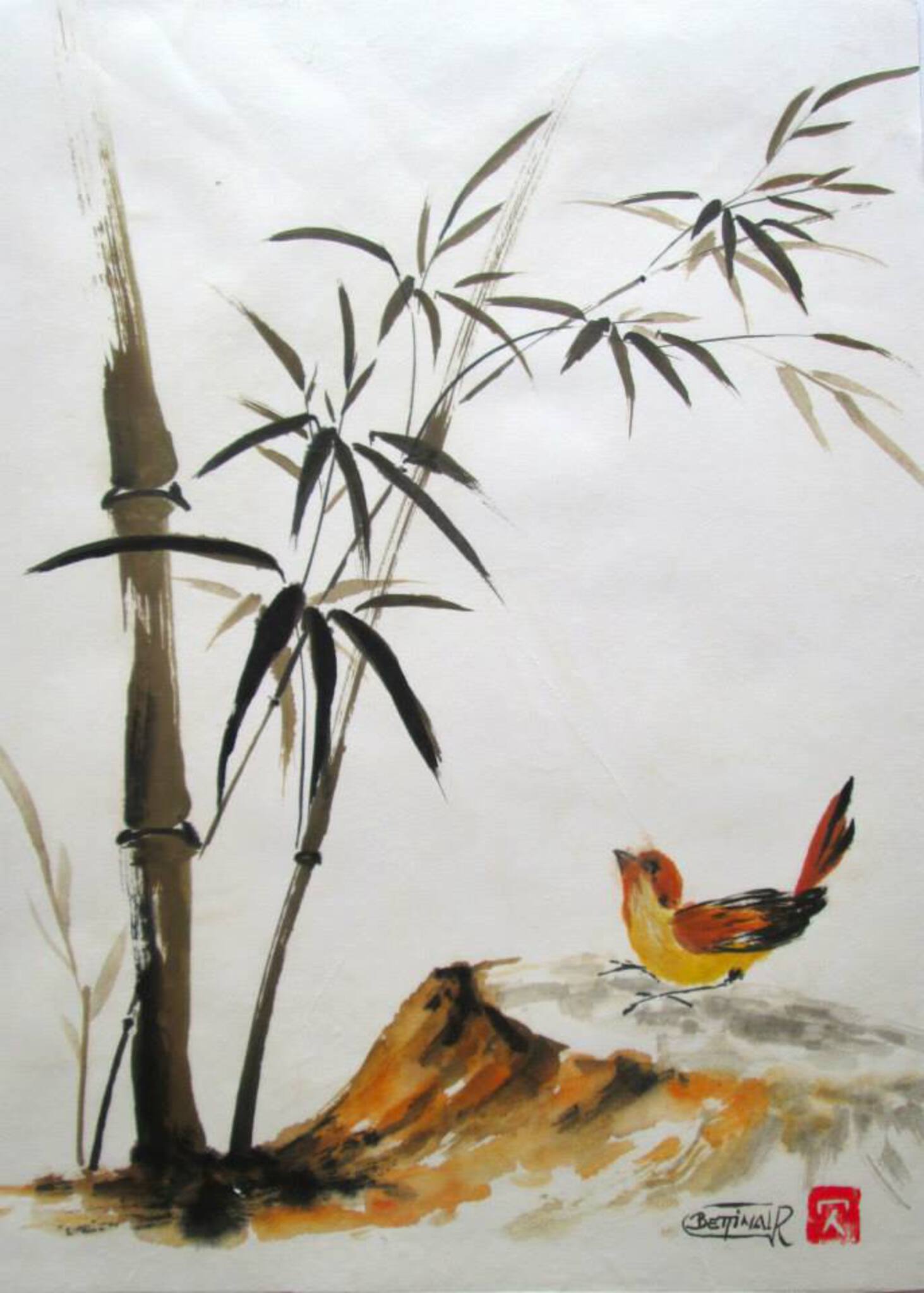 Aquarel en Chinese inkt op rijstpapier, ingelijst. 40x50cm Prijs = € 65,00 - 50% korting ! Verzending met track and trace binnen NL = € 8,25