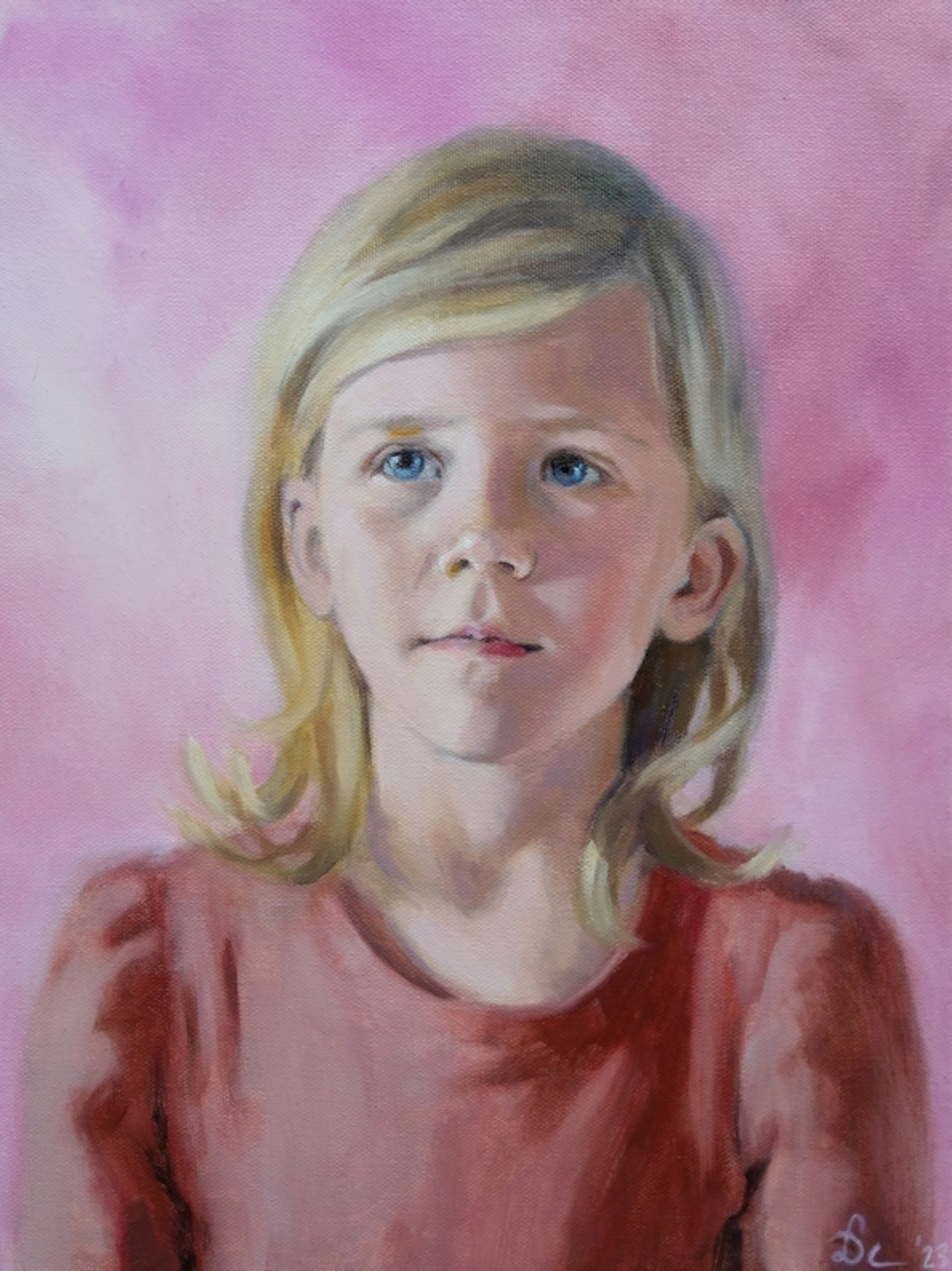 Realistische portretten: vrij werk en in opdracht. Ik werk met olieverf, aquarel, potlood en houtskool. Het vangen van dat ene moment waarop alles klopt is elke keer weer een fascinerende zoektocht.