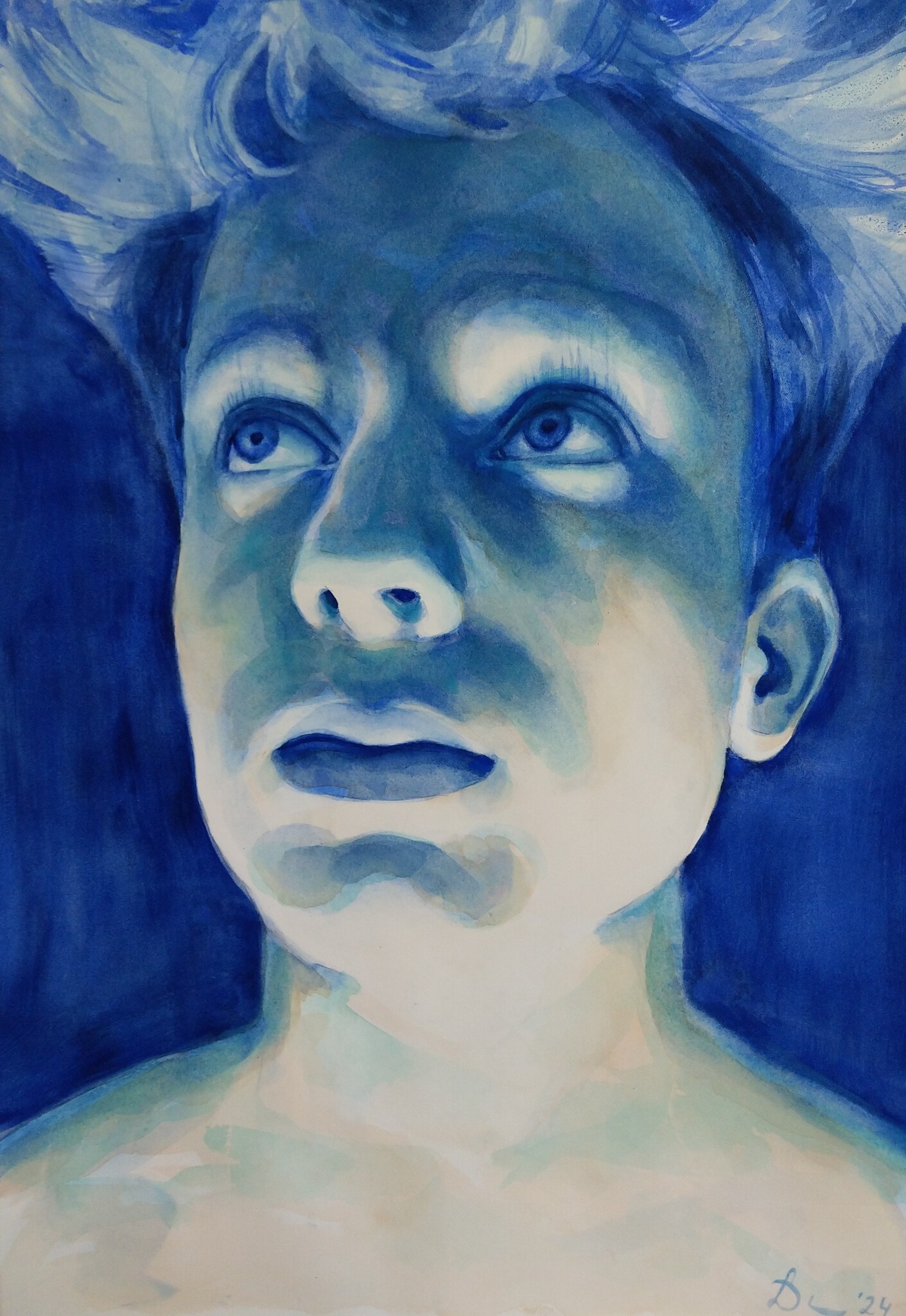 Blauw Portret Aquarel Jongen