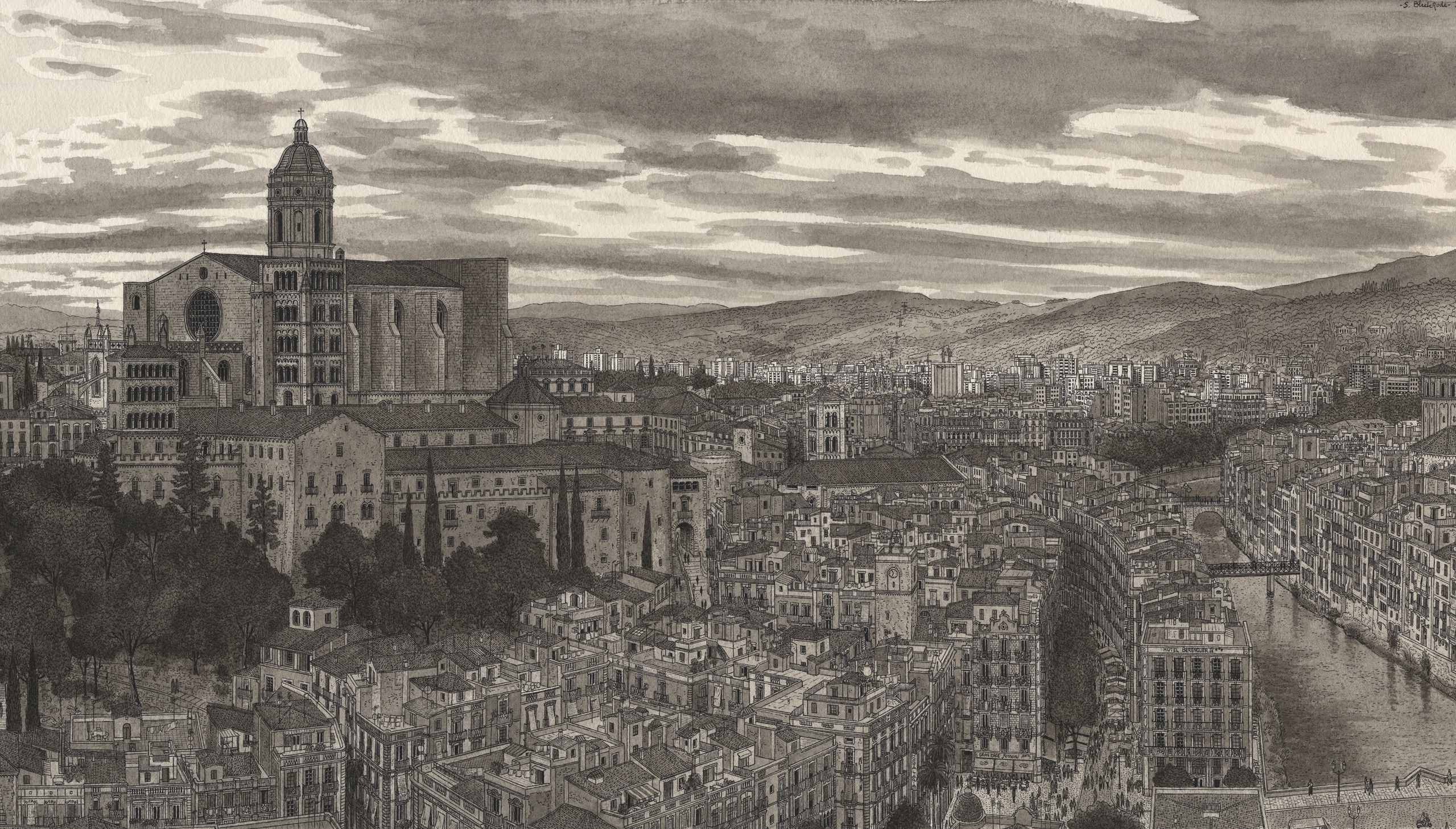 Spanje Spain Stad City Realisme Realism Tekening Drawing Kunst Art Inkt Ink Aquarel Watercolor Perspectief Perspective Architectuur Architecture