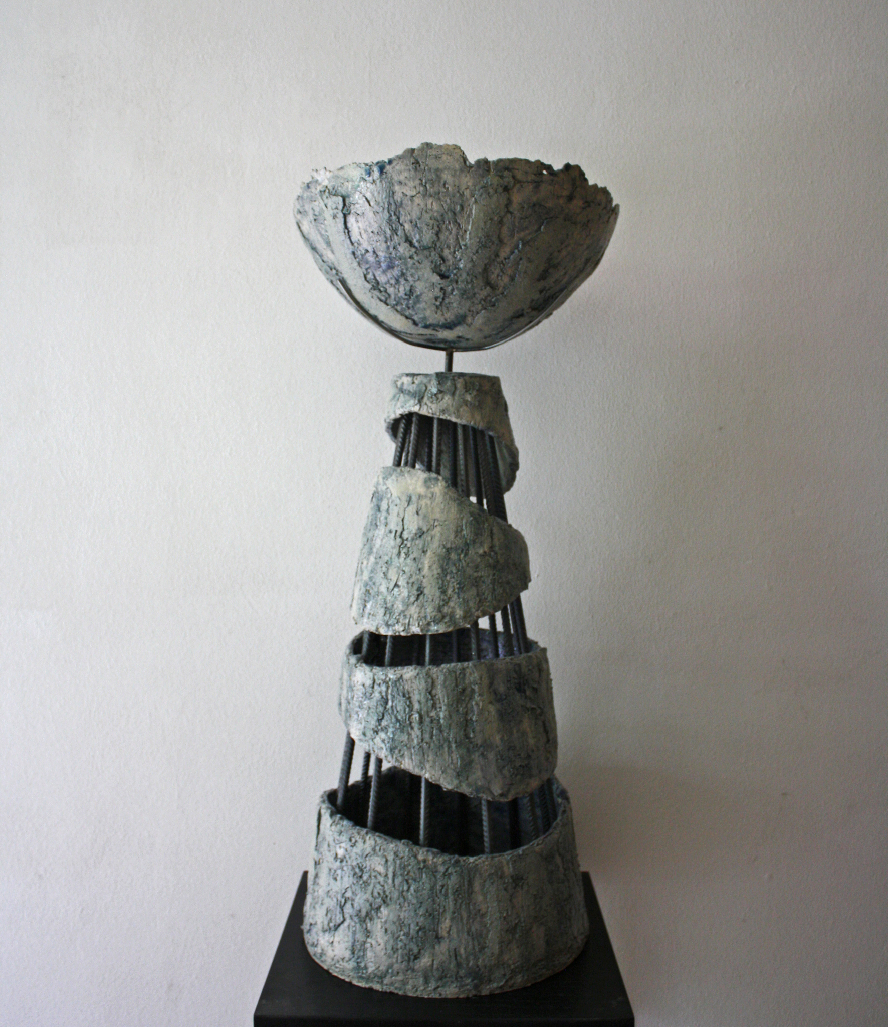 Klei, grof, gevormd, geduwd, geschraapt. Ruwe huid, schrale kleur en soms gecombineerd met metaal. Hiermee kan ik mijn ideeën en gedachten verbeelden. Mijn beeld vertelt, de kijker luistert.