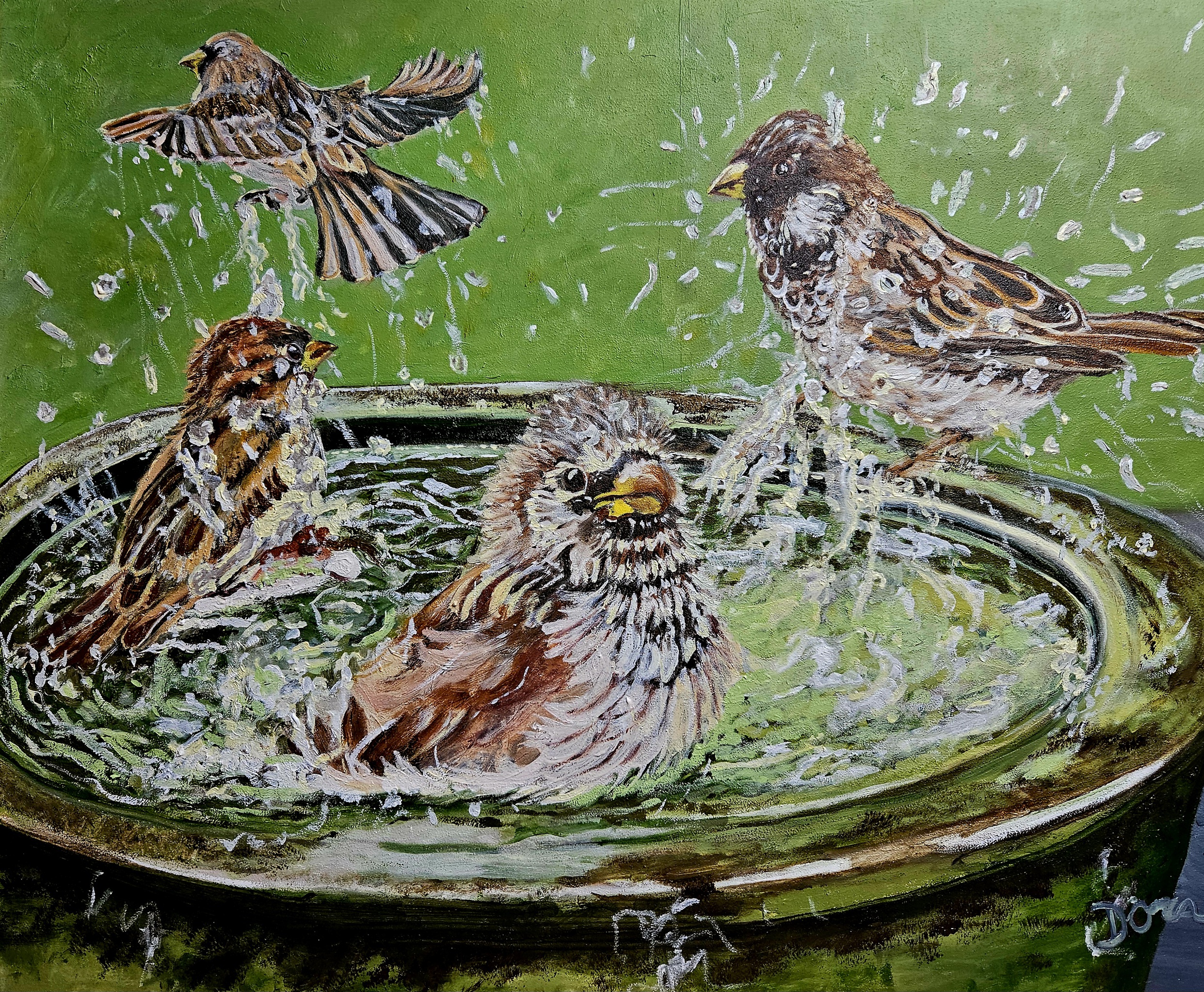Groen Aluminium Olieverf Natuur Vogels Mussen Bad