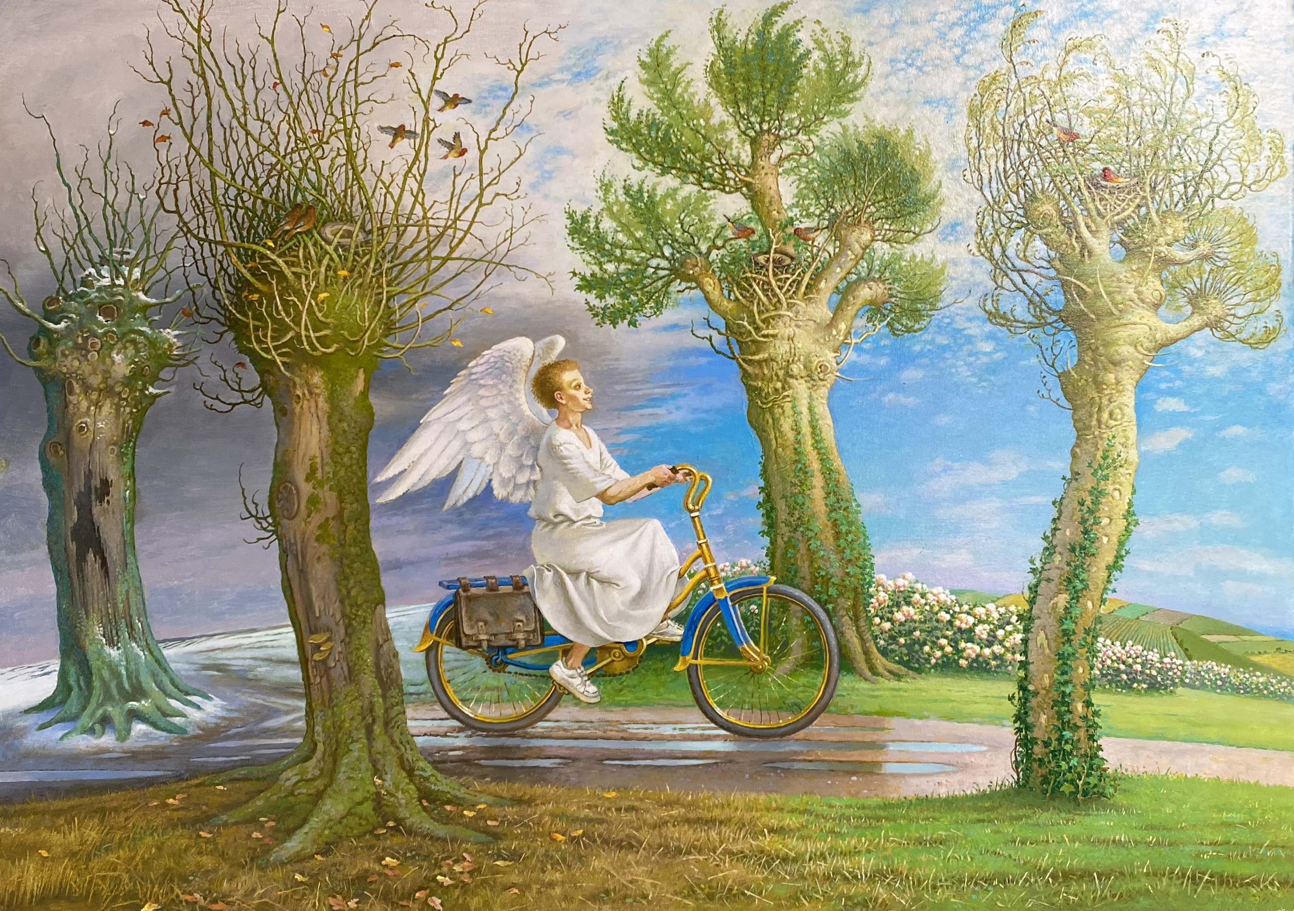 Hope Engel Fietser Angel Hoop Olieverf Surrealisme Kleurrijk