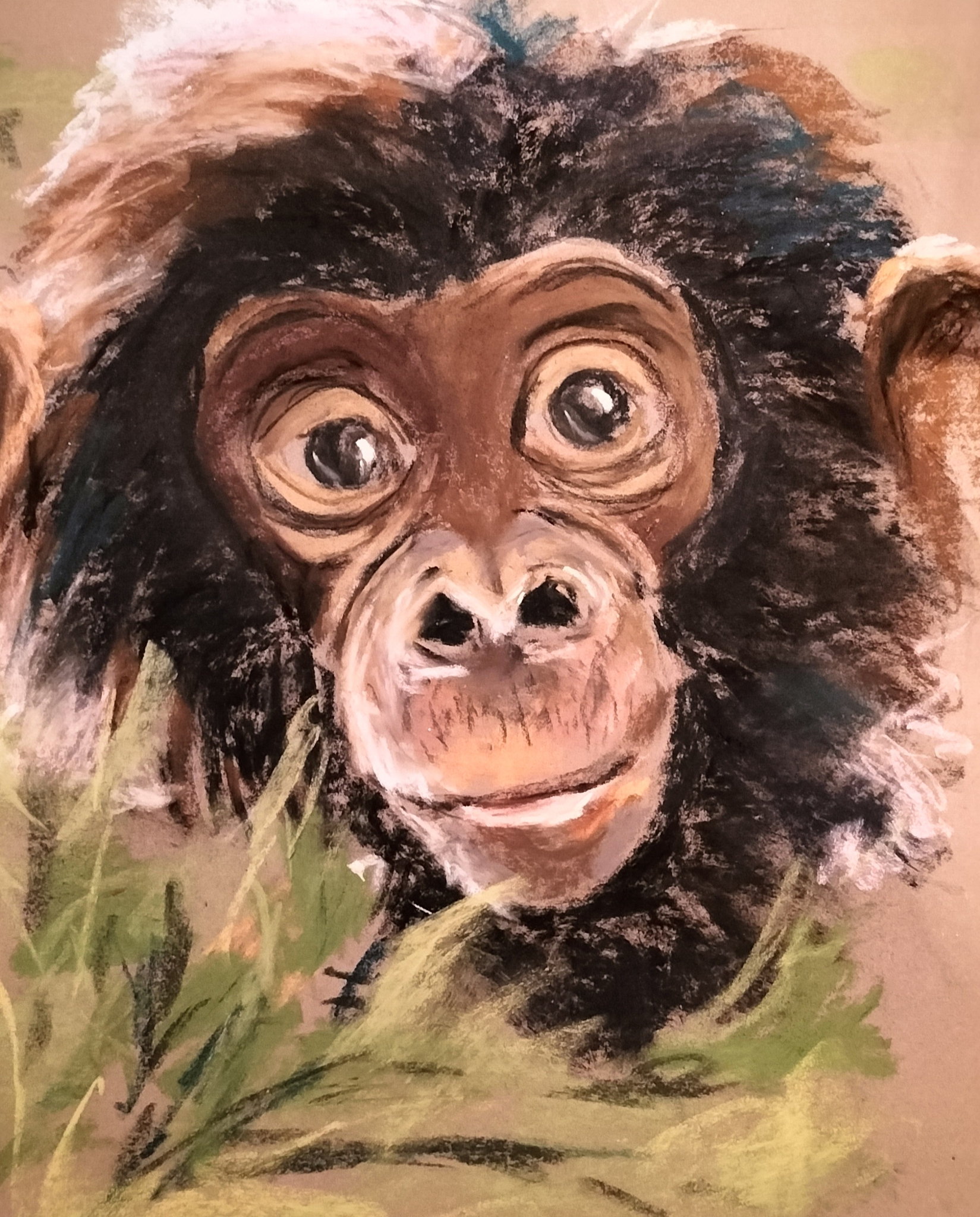 Dier Aap Portret Gezicht Ogen Pastel Pastelkrijt Lyrisch Expressief