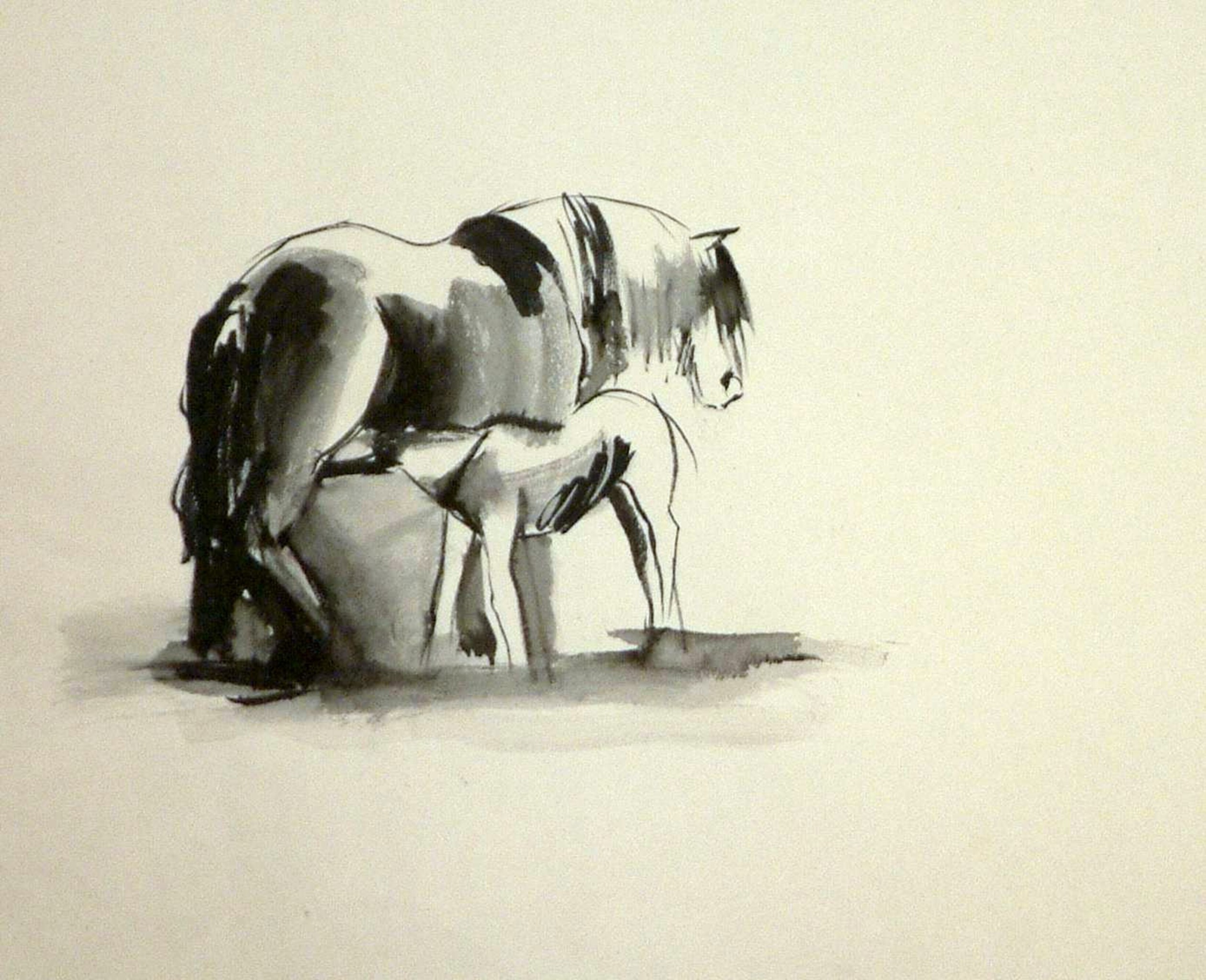 Wit Zwart Paard Black White Veulen Foal Horse And Inkttekening Ink Sketch Tinker