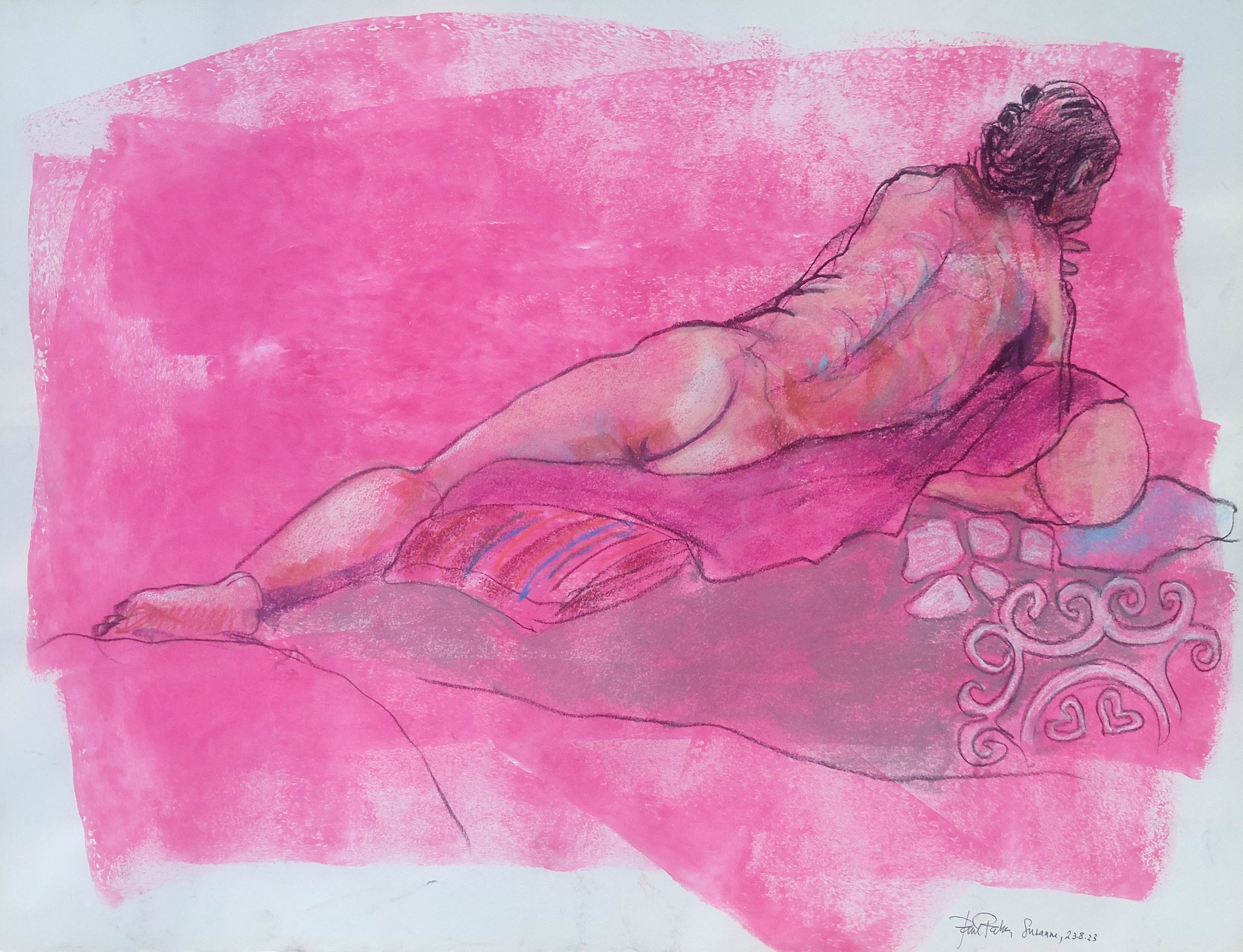 Liggend naakt, op de rug gezien.