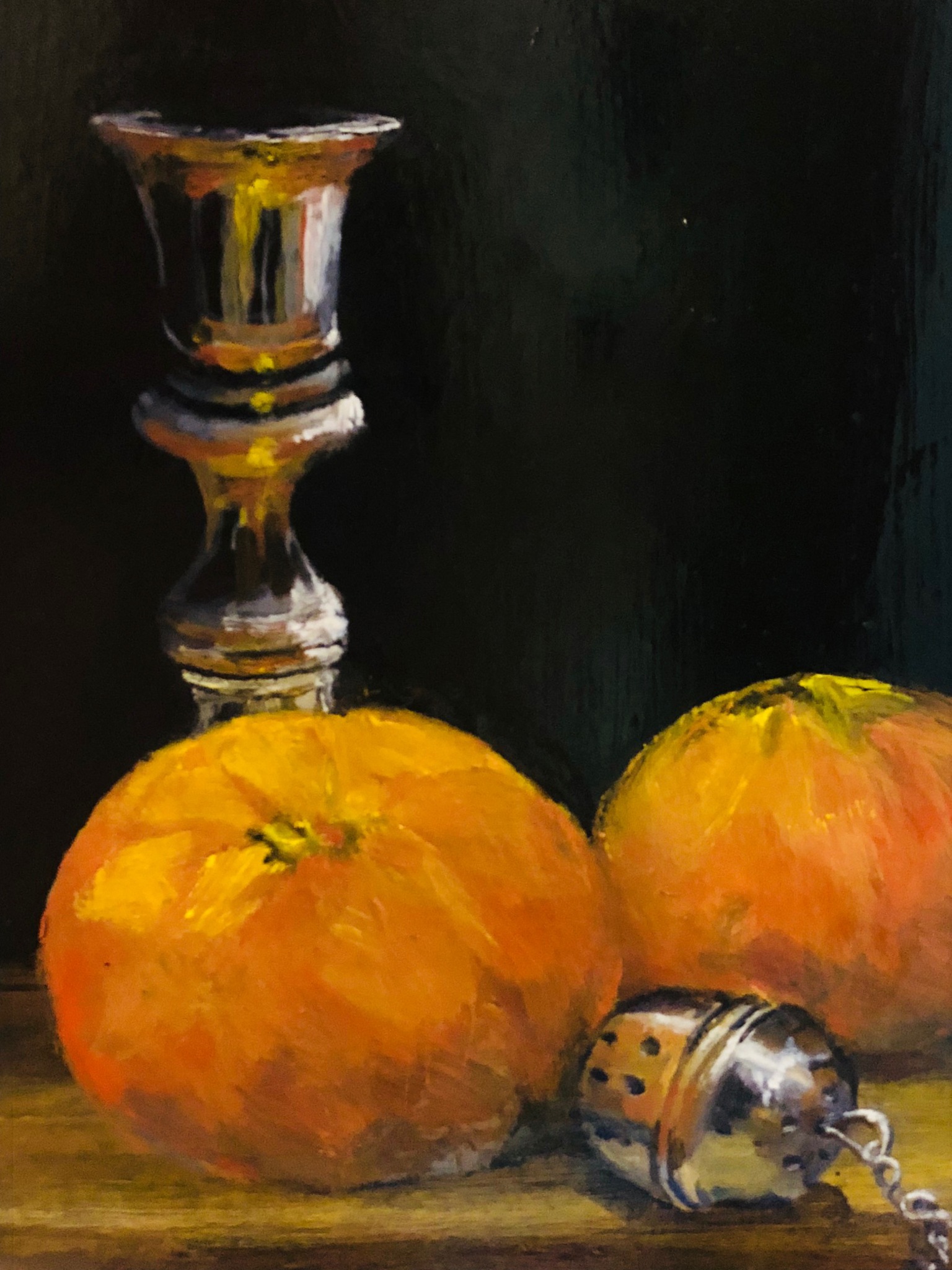 mandarijnen met kaarsenhouder, toetsig werk acryl