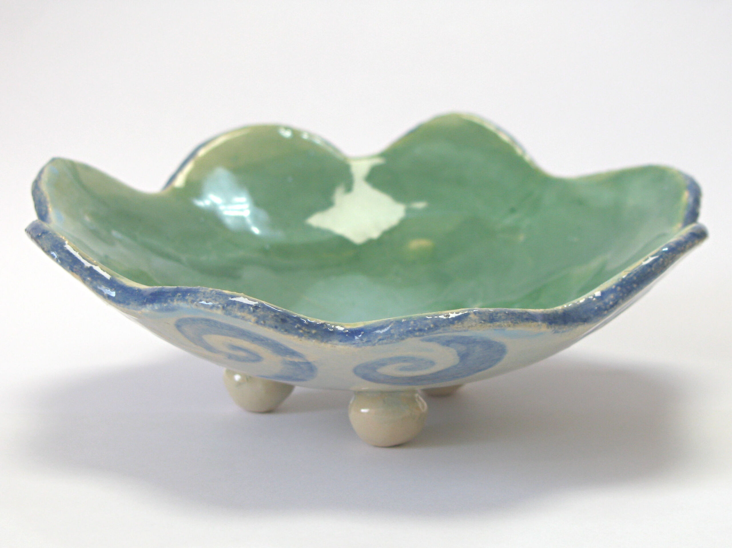 bonbonniere, handgevormd, geglazuurd, op 3 bolpootjes