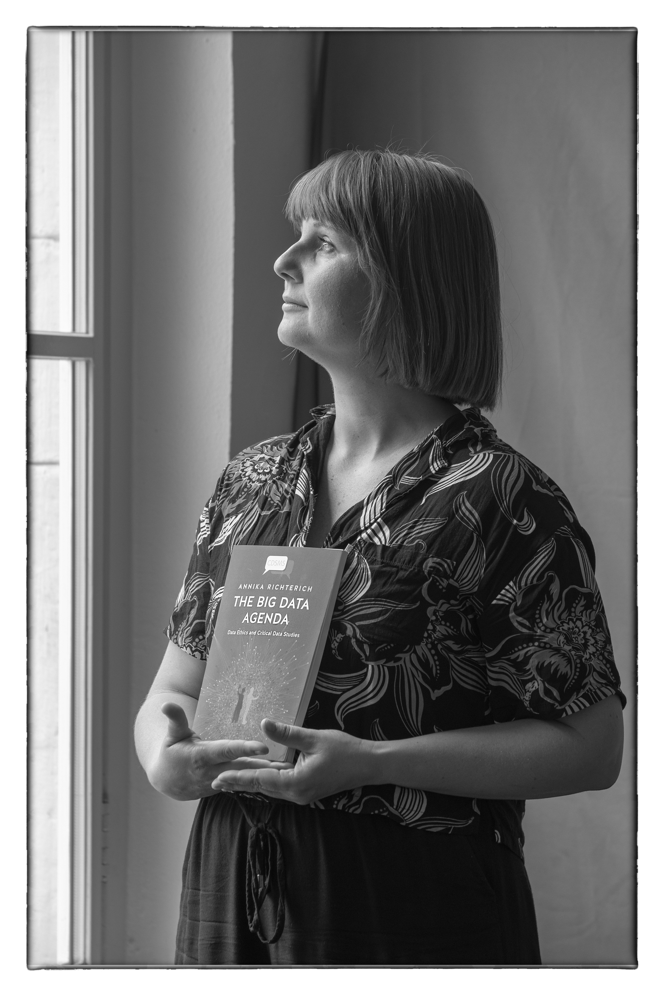 Een reeks portretten van docenten van de UM met het boek dat ze hebben gepubliceerd. De hele serie van zo'n 30 foto's is te zien in de collegezaal van FASoS, de Turnzaal, Grote Gracht 90-92