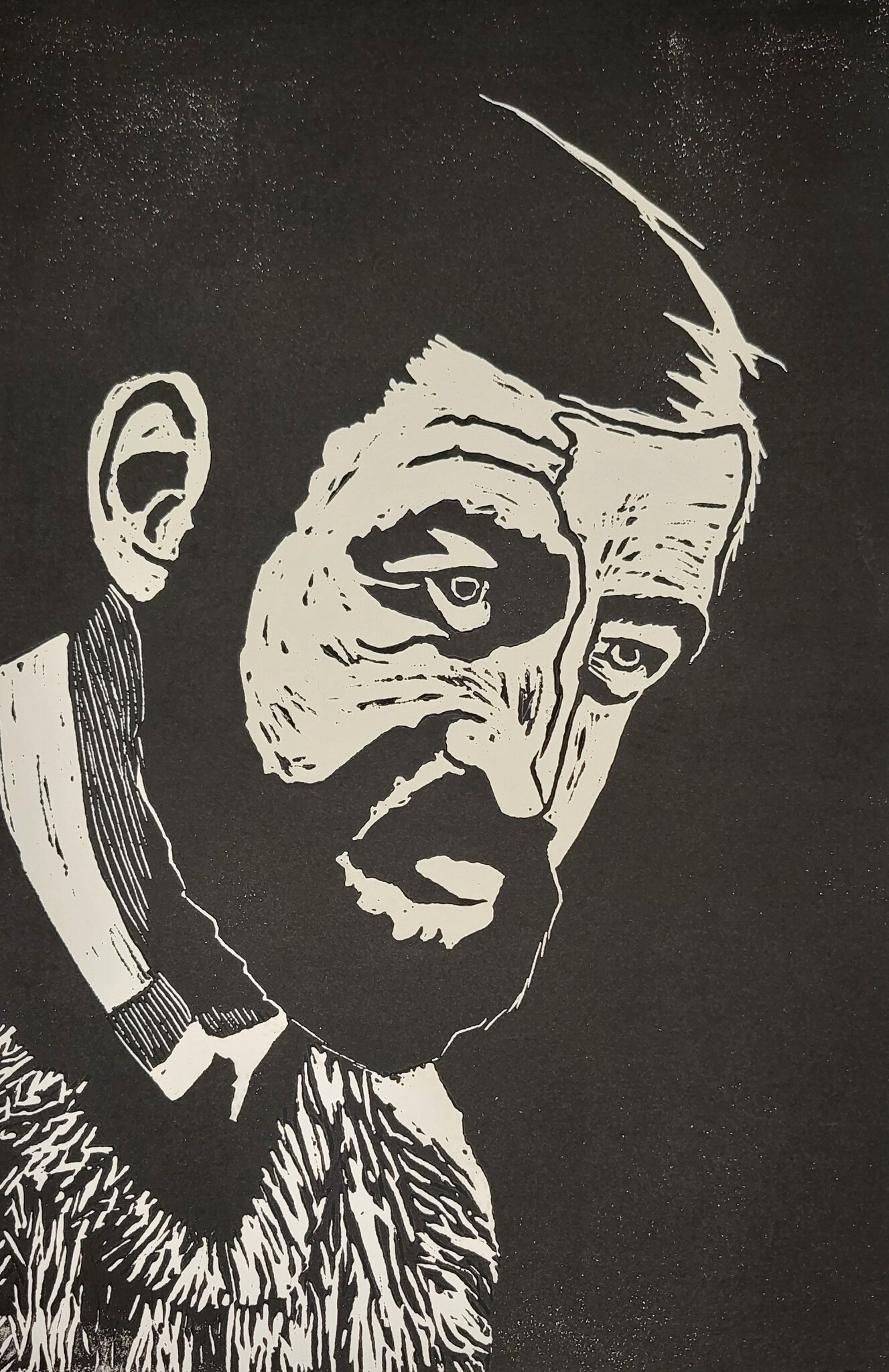 Linosnede van mijn vader naar een foto uit de jaren '70