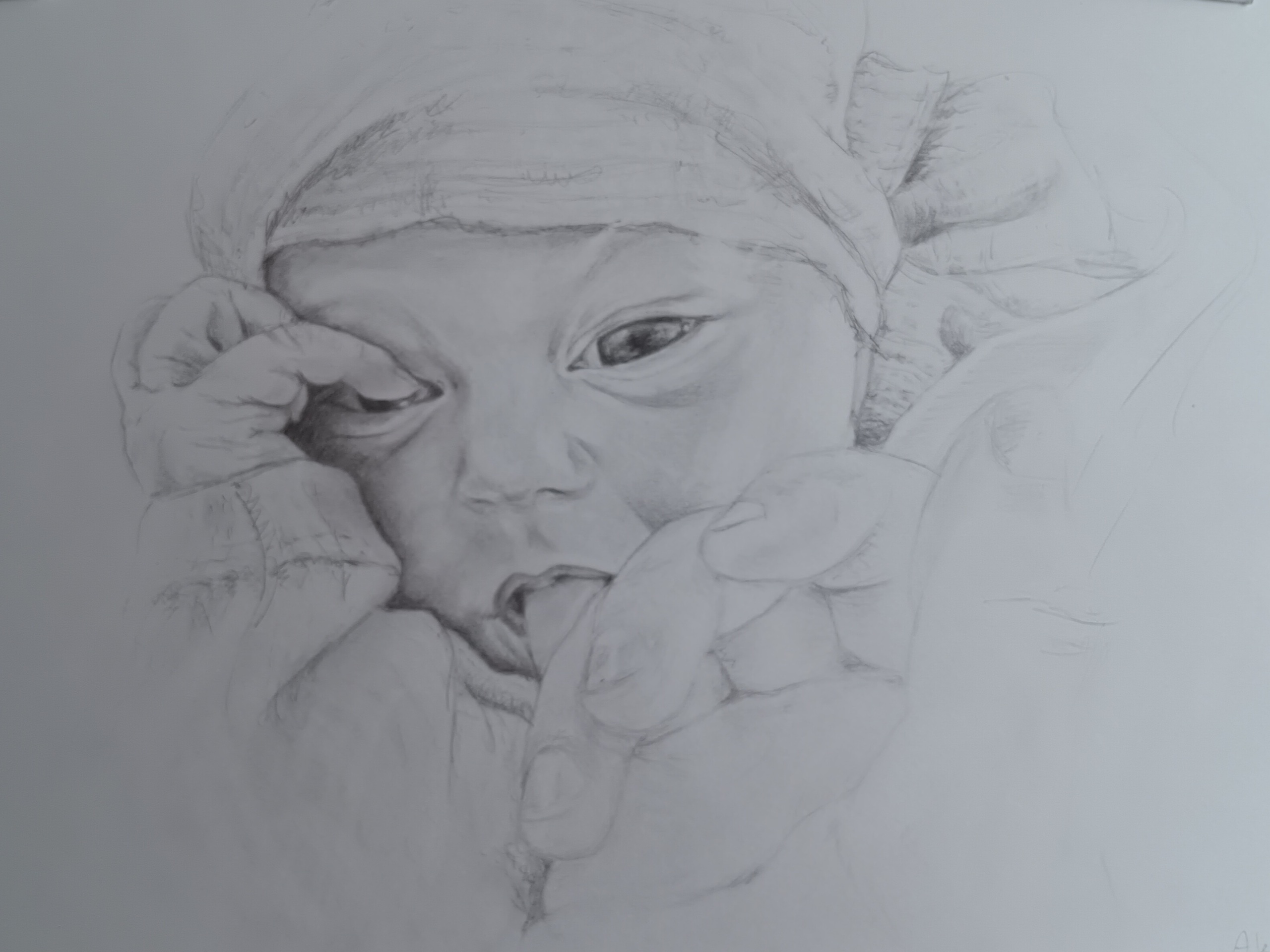 Portret van foto, A3 formaat hb2 en 3 potlood.