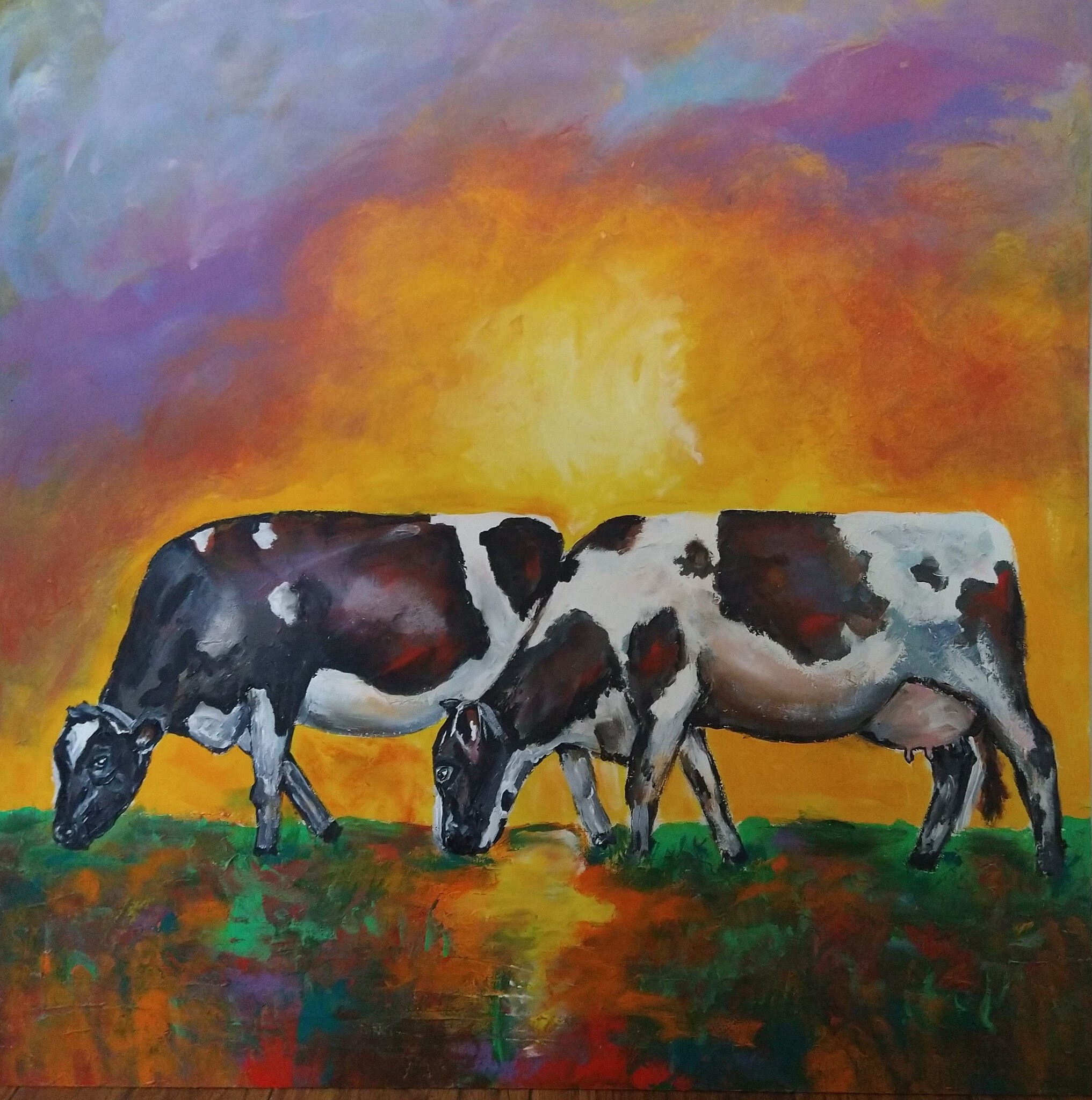 Angelien Geerligs voelt zich verbonden met de prachtige nederlandse natuur waaruit zij haar inspiratie vandaan haalt. De koeien en de waterrijke gebieden spreken haar aan.