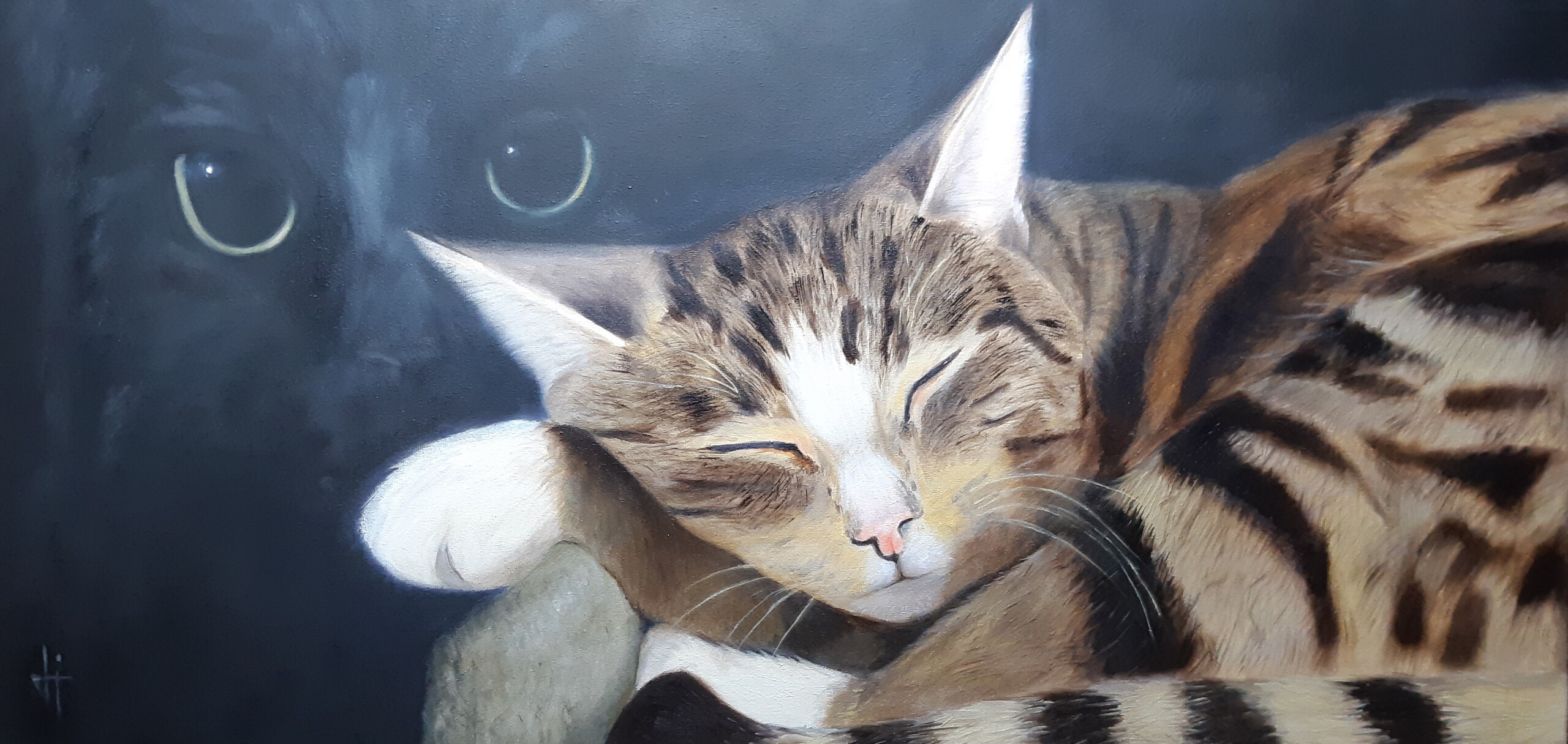 Sinds een aantal jaar heb ik het schilderen met olieverf ontdekt. Startend met het portretteren van mijn eigen honden bemerkte ik hoe heerlijk het is om dierportretten te schilderen.