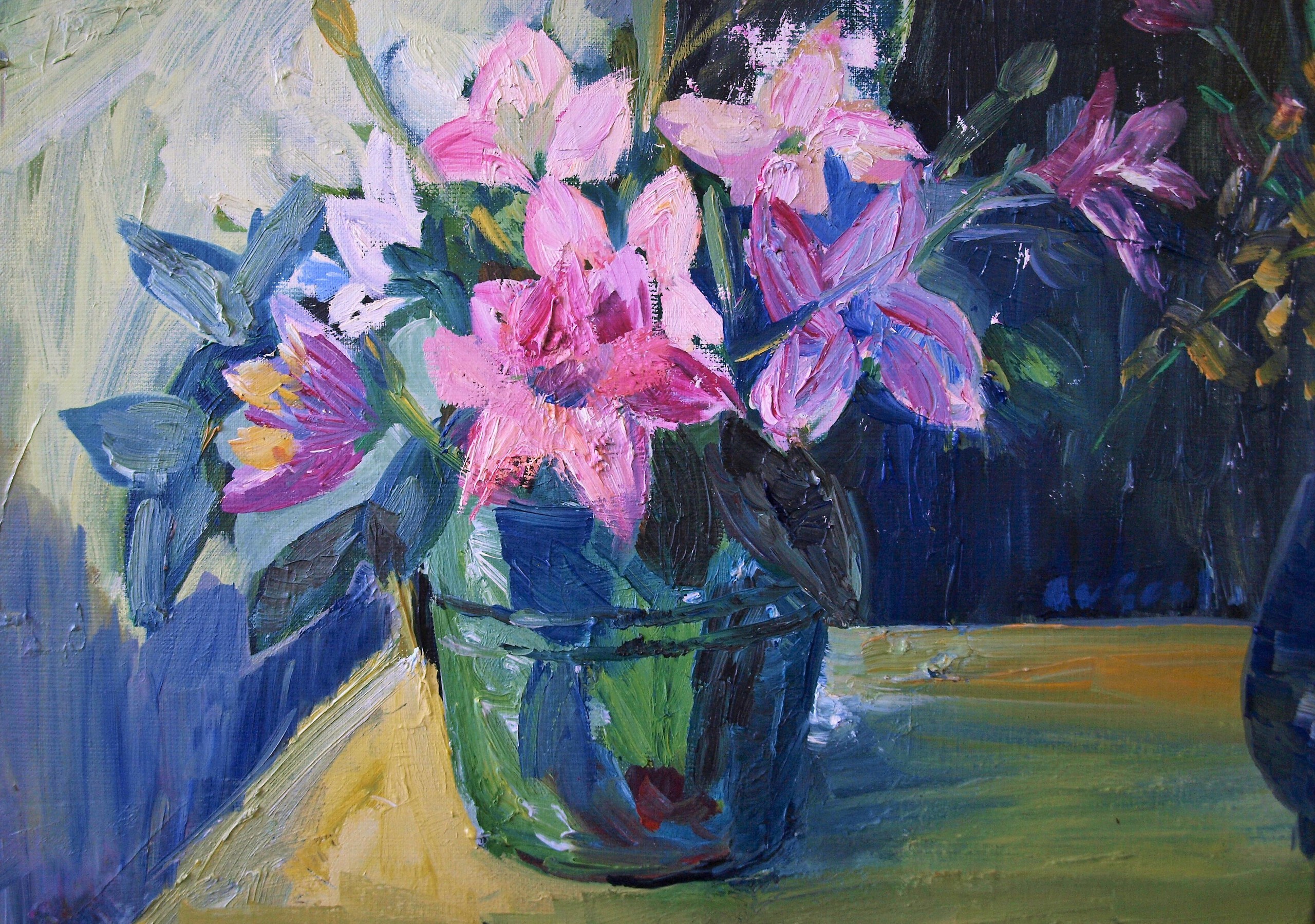 Anja schildert vooral met olieverf en aquarel. Aquarelletjes gemaakt tijdens vakanties worden in olieverf vastgelegd op doek.