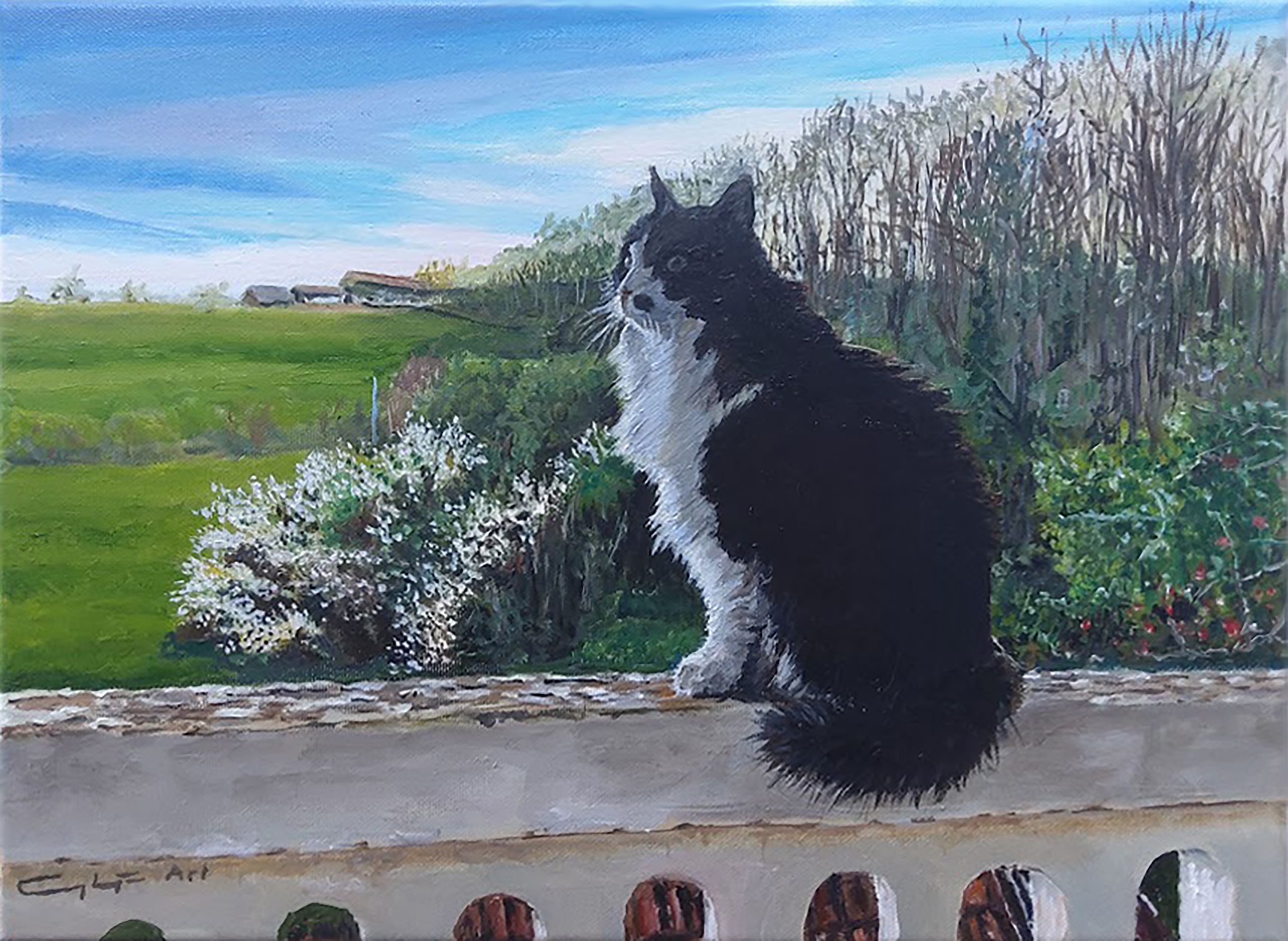 Harry de kat wonend in Frankrijk. Prinsheerlijk zittend op het balon. Waar het baasje meegeniet van het uitzicht.