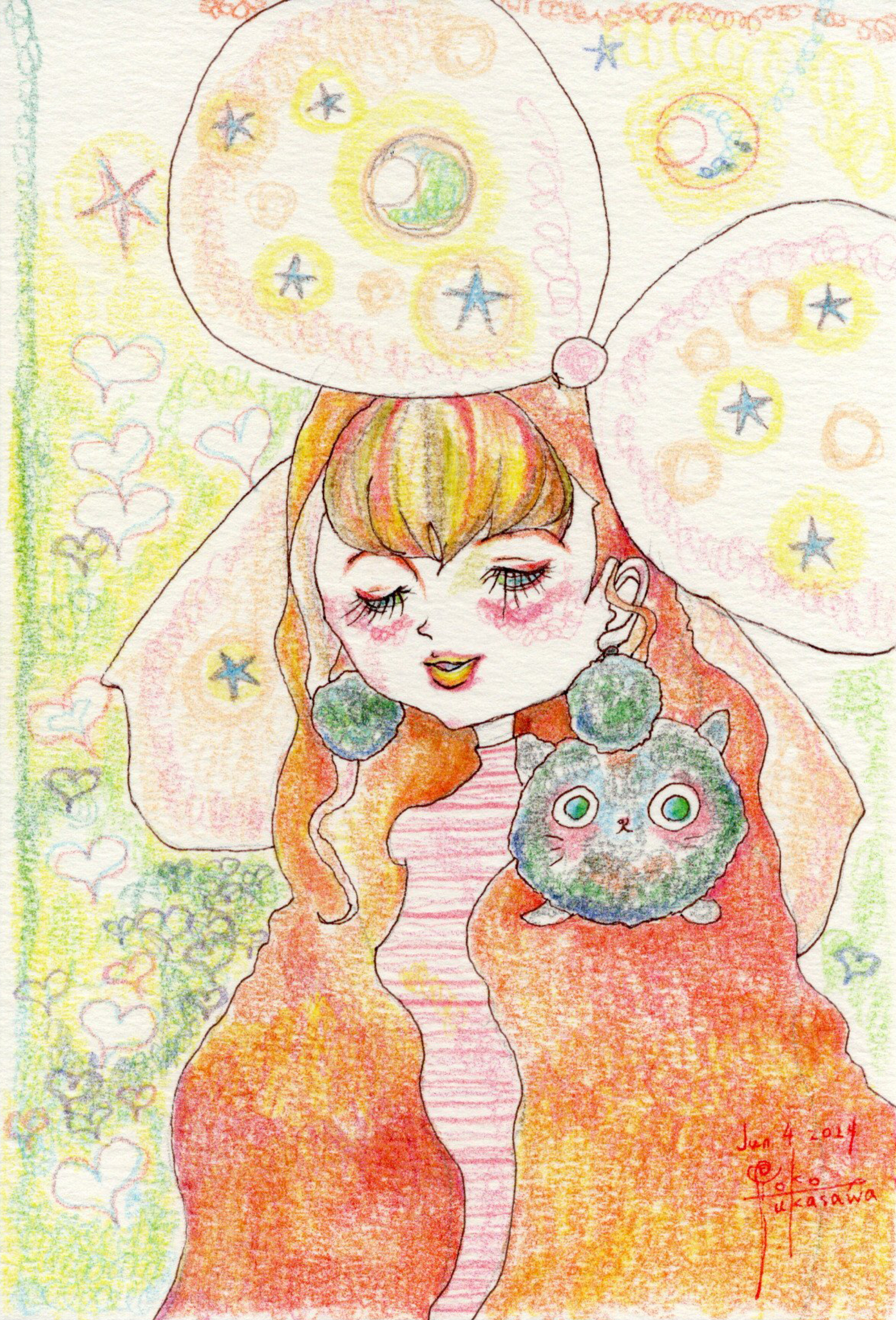 Yoko Fukasawa was born in 1982. 2001-Japan traditional craft department,Metal crafts major 2001-Volkswagen new Beetle - art contest The third place. 2002-TOKYO DOME - Tableware festival Fine work. 2017-And Schizophrenia has been revealed. Her paintings are outsider art. They are characterized by simple shapes and bright colors. She wants you to look at them and relax.
