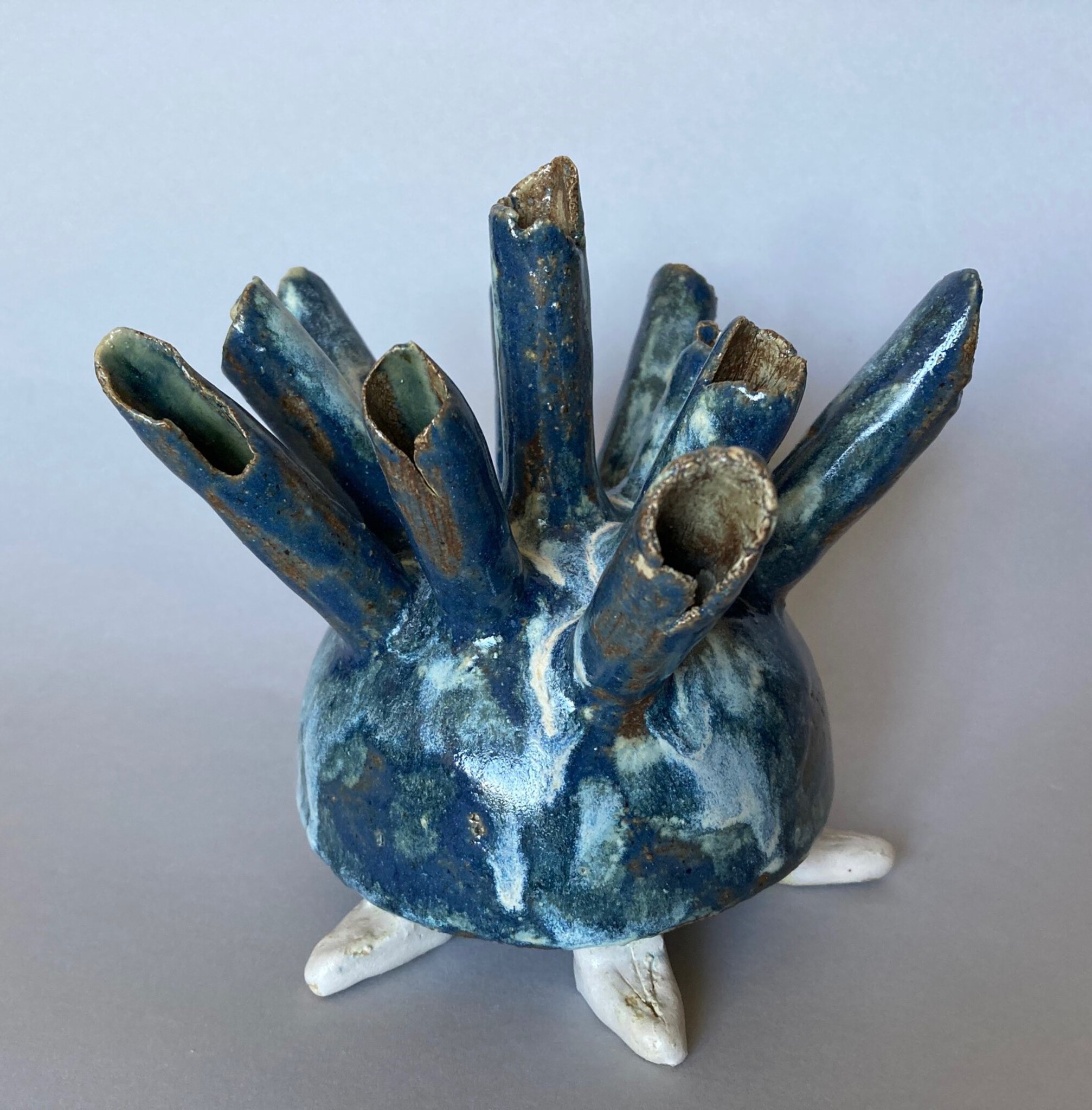 De objecten die ik maak zijn handgevormd en zijn in de eerste plaats bedoeld om naar te kijken. Ze geven weer wat mij bezig houdt en houden de kijker vaak een spiegel voor. Ik werk zoveel mogelijk met zelfgemaakte glazuren met oxides en zonder chemische toevoegingen.