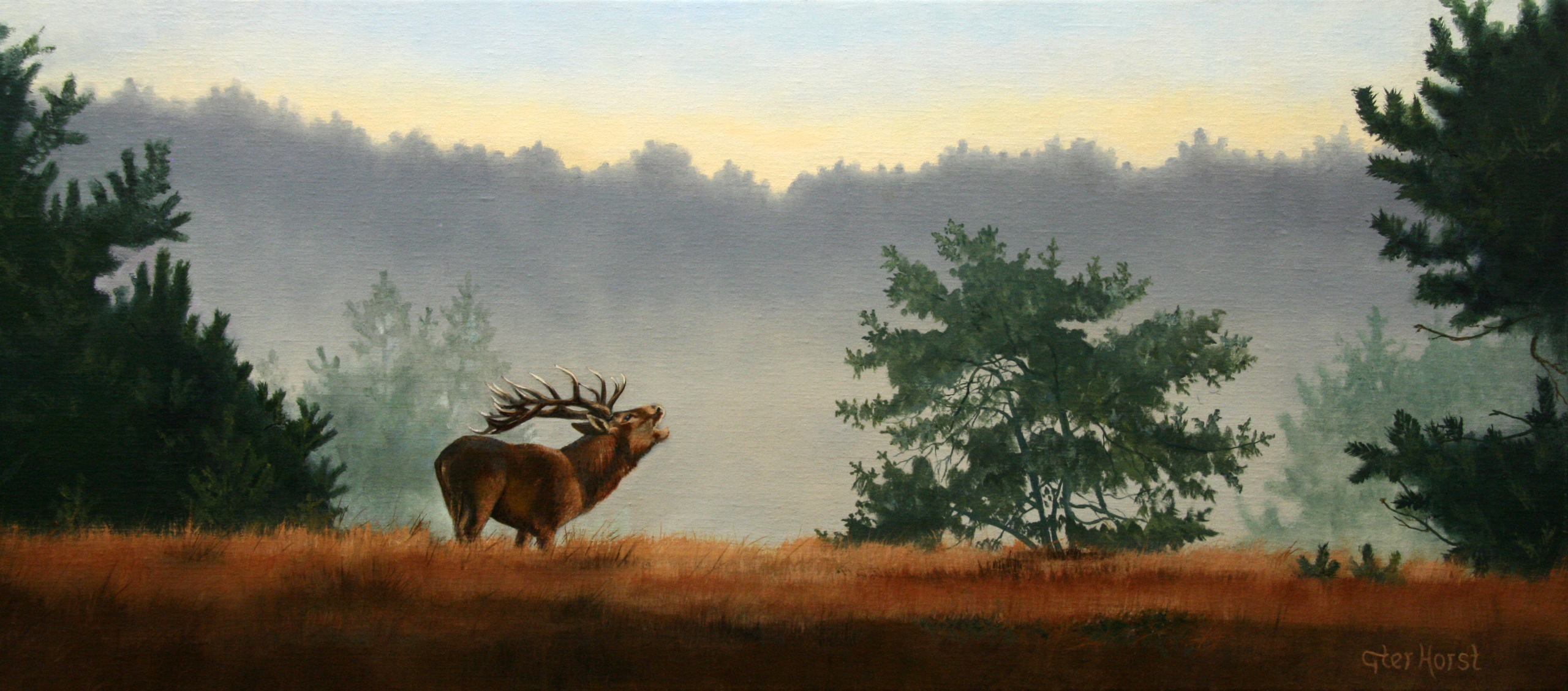Burlend hert op heide