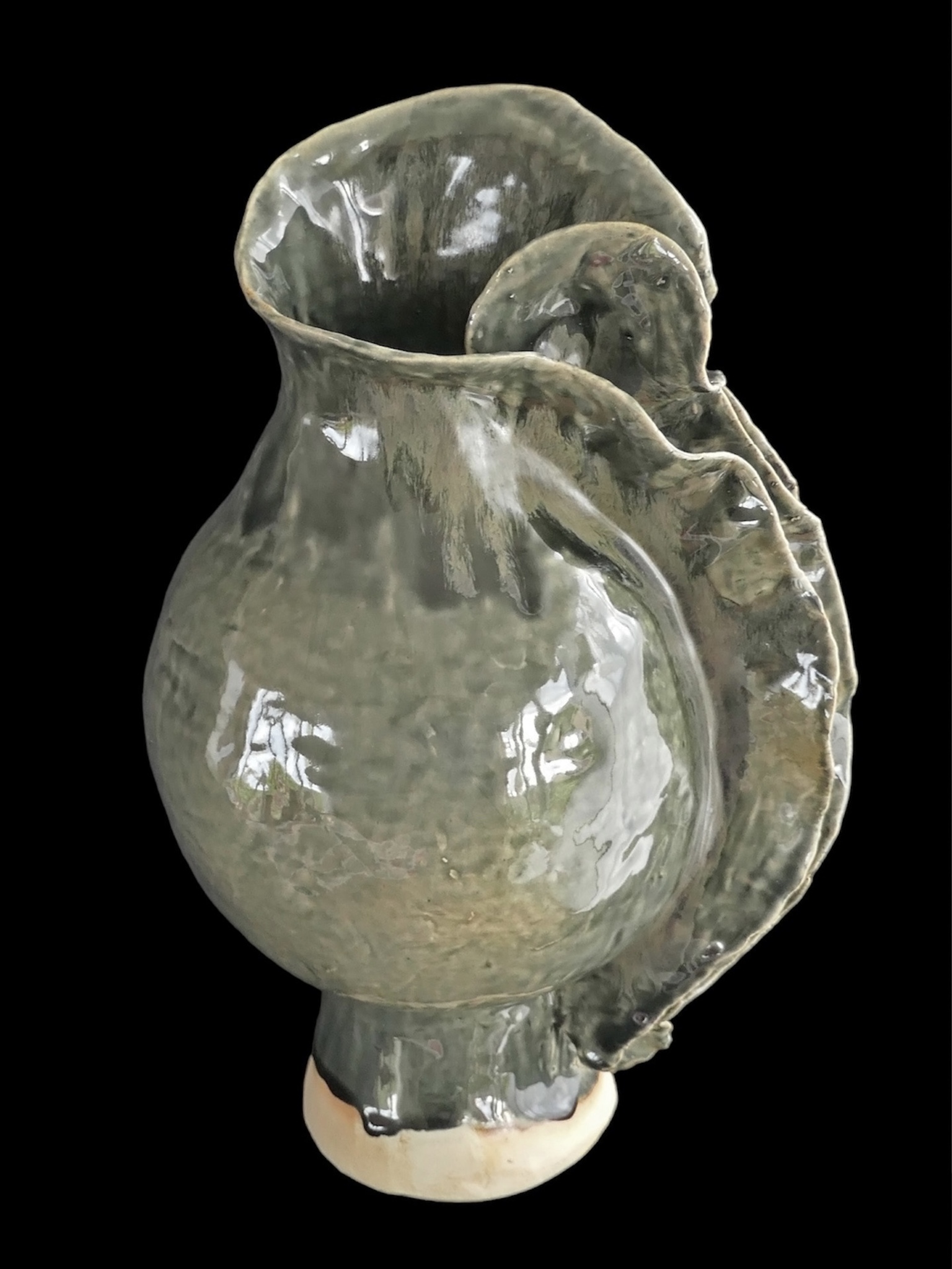 Naar aanleiding van de inspirerende haute couture van Iris van Herpen: vaas met groen effectglazuur, gemaakt van steengoed.