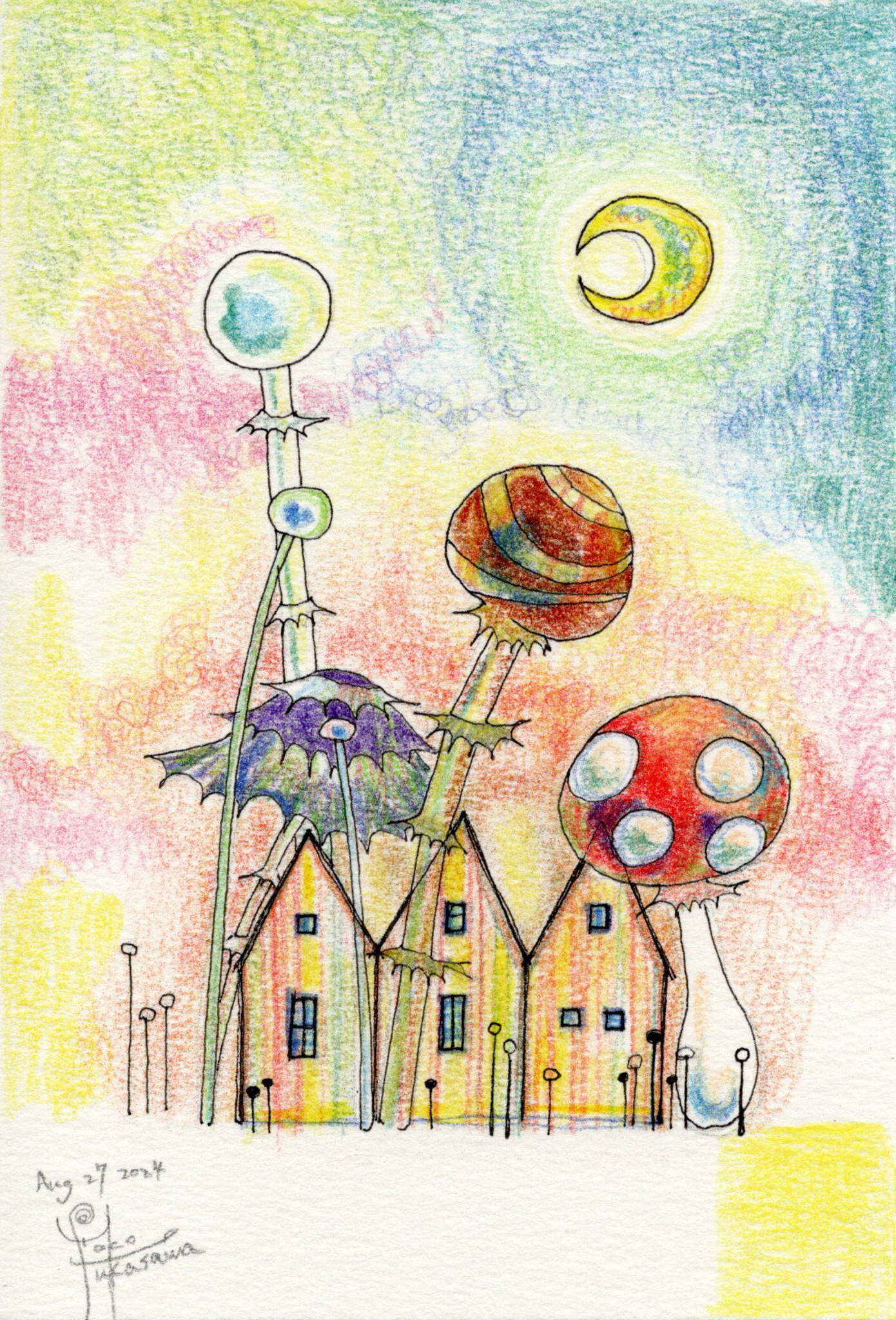 Yoko Fukasawa was born in 1982. 2001-Japan traditional craft department,Metal crafts major 2001-Volkswagen new Beetle - art contest The third place. 2002-TOKYO DOME - Tableware festival Fine work. 2017-And Schizophrenia has been revealed. Her paintings are outsider art. They are characterized by simple shapes and bright colors. She wants you to look at them and relax.