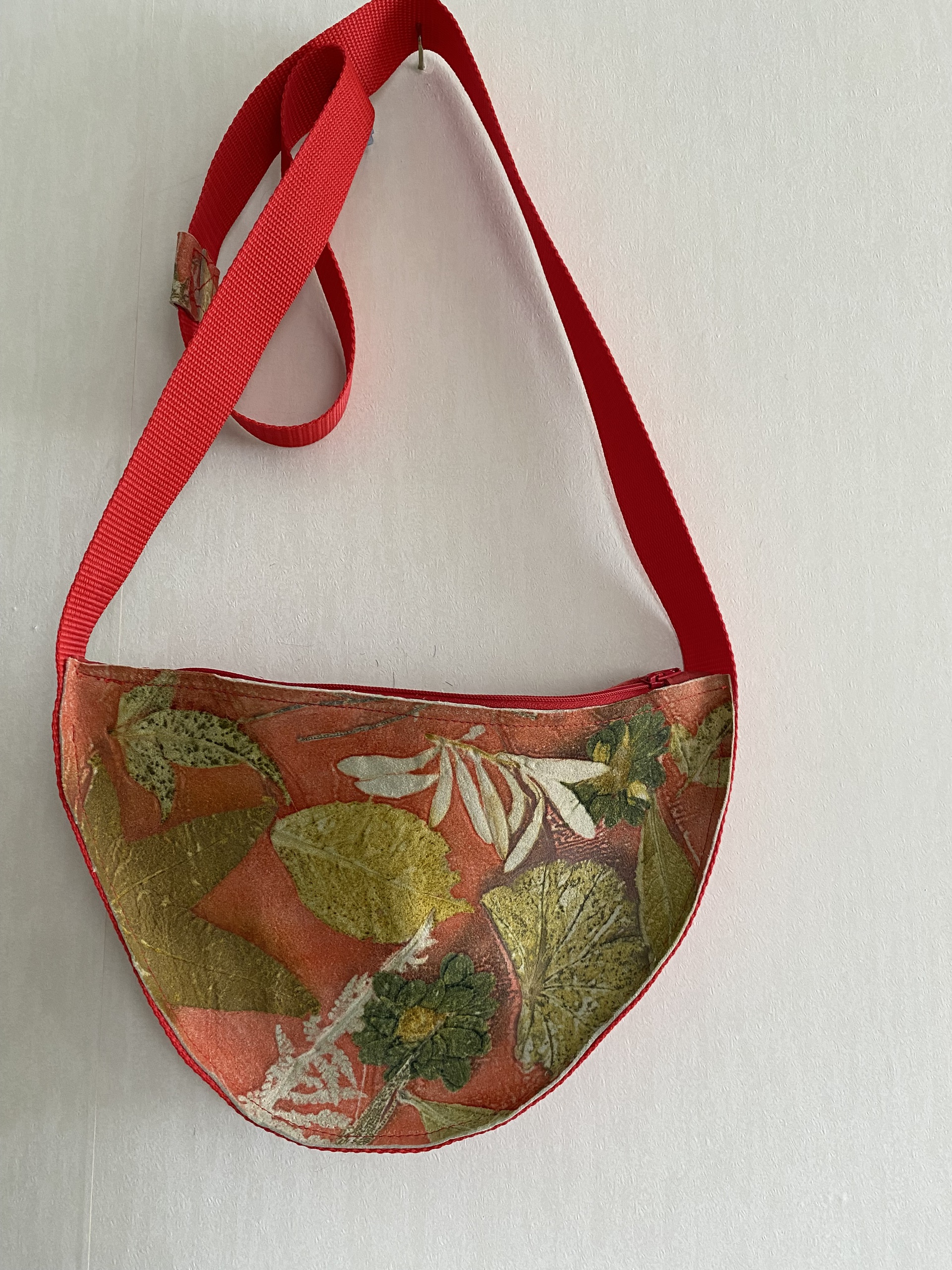 Na jaren vilten ontdekte ik ecoprinten, dwz uit bladeren en bloemen de afdruk weergeven op textiel of papier. Vooral werken met geitenleer heeft mijn voorkeur. Ik maak er vaak tasjes van.