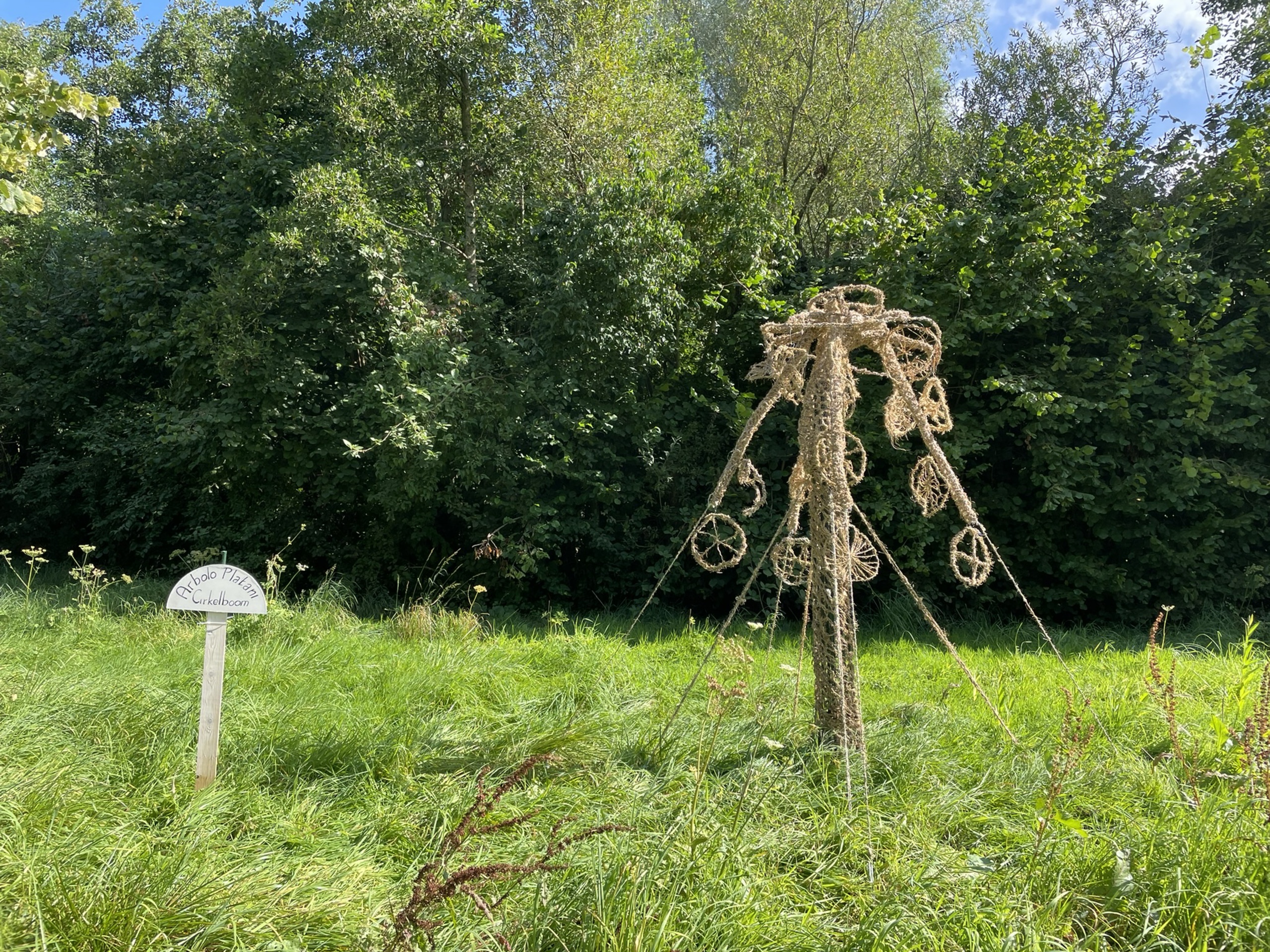 Deze boom is geinspreerd door de kruidentuin van Kruytenburg. Ik wilde ook een boom laten groeien omder mijn handen met een mooie naam Ik heb gras geplukt in eigen tuin en hiervoor draad gevlochten. Daarna gehaakt tot schors en vruchten voor deze boom. De bloeiwijze van mijn boom is cirkelvormig, uniek is dat elke vrucht afwijkt van de anderen