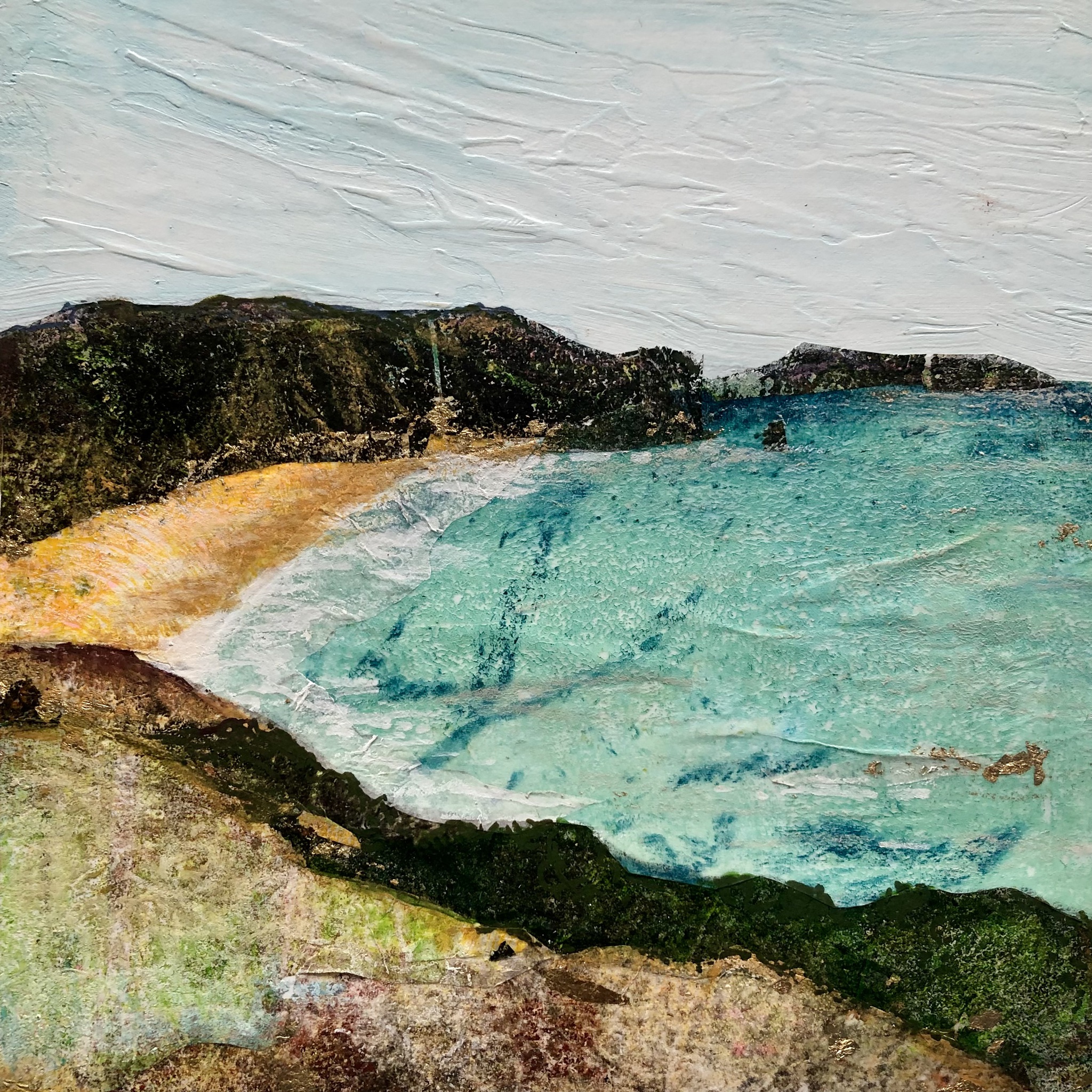 In mijn werk maak ik gebruik van gemengde technieken en werk ik graag in lagen, al dan niet gebruikmakend van textuur. Ik houd ervan om onderlagen weer zichtbaar te maken en weer nieuwe lagen toe te voegen. Al doende groeit het beeld onder mij handen, letterlijk, omdat ik graag met mijn handen werk om te bereiken wat ik wil.