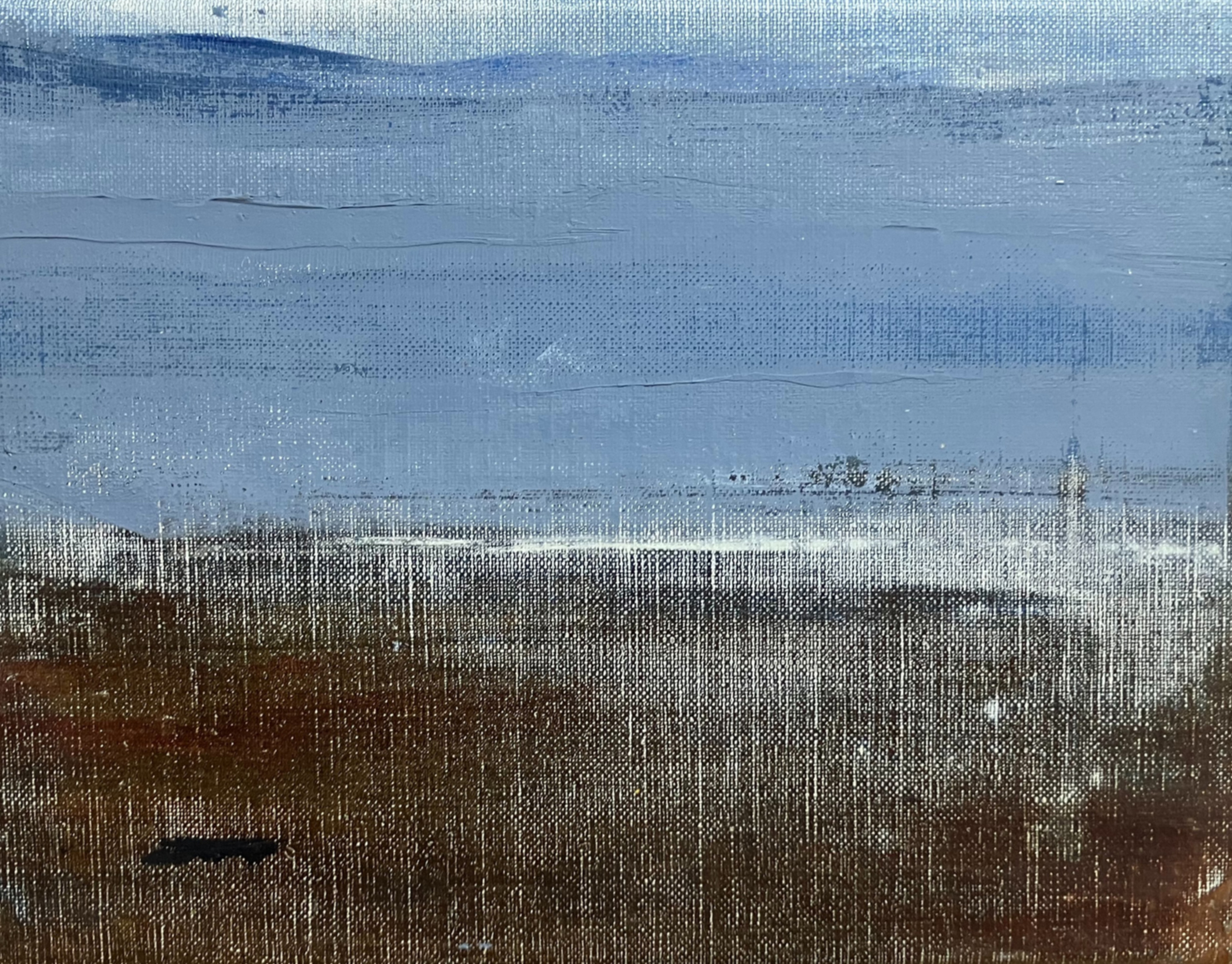 Schilderijen, collages en tekeningen. Een poëzie van landschappelijke elementen, een expressie van verlangen naar verstilling.