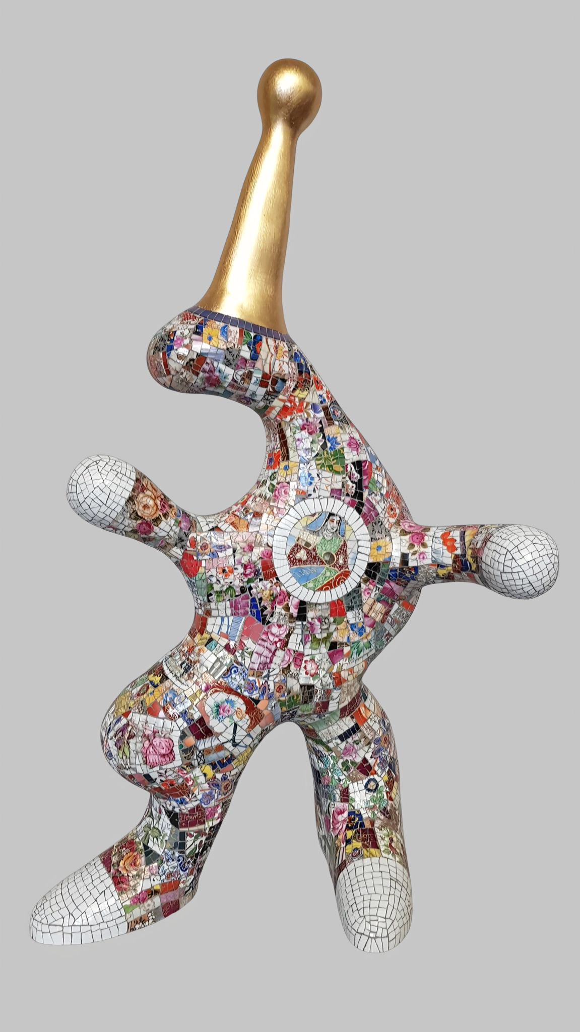 Porselein sculptuur met divers en wit porselein in combinatie met " bladgoud " UNICA en volledig met de hand gemaakt. Ingevoegd en opgepoetst. Incl. de 3 oortjes en initialen WA. Deze is NIET te koop.