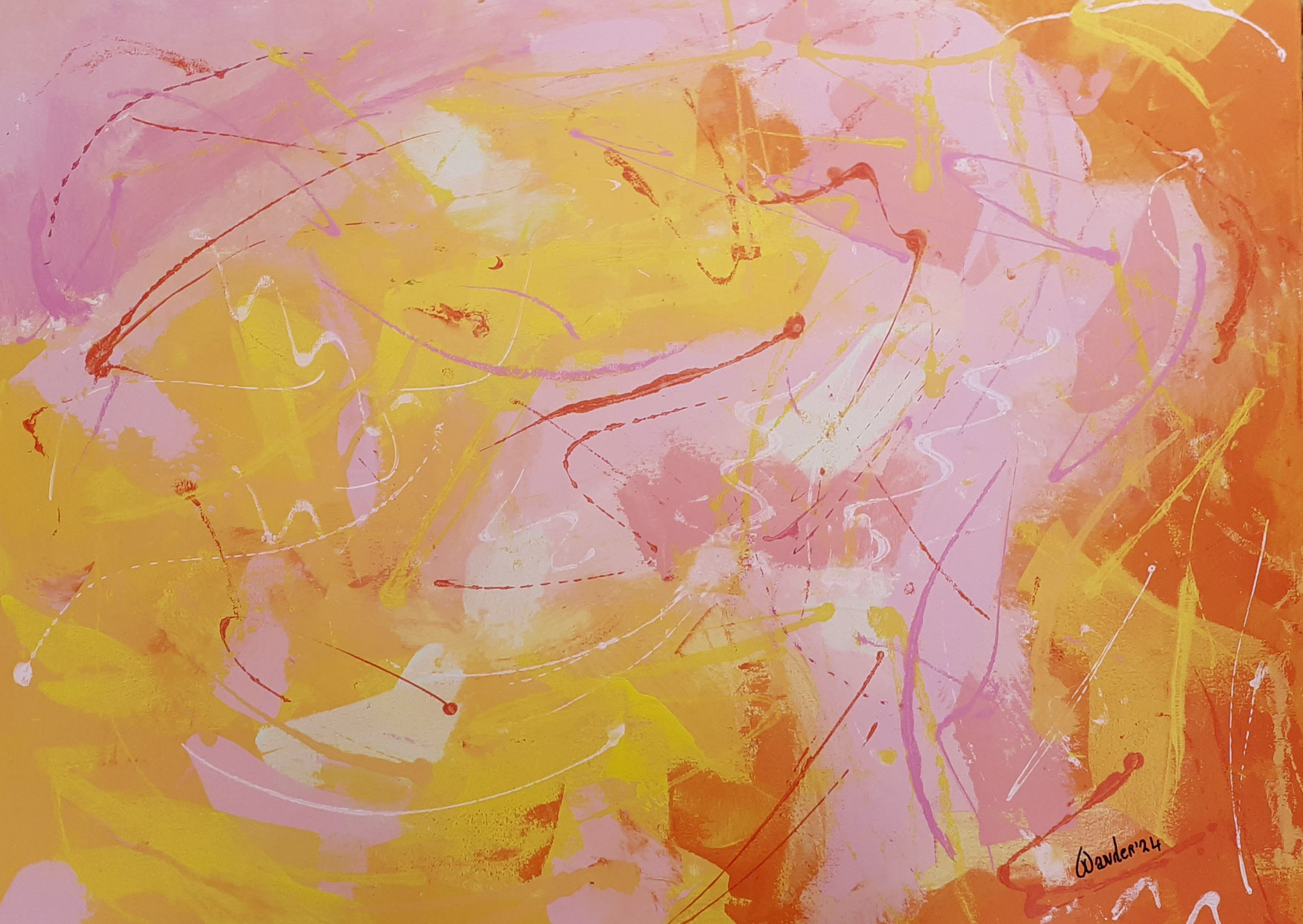 Een mix van technieken en stijlen , van wild abstract, naar figuratief naar strak bijna grafisch.