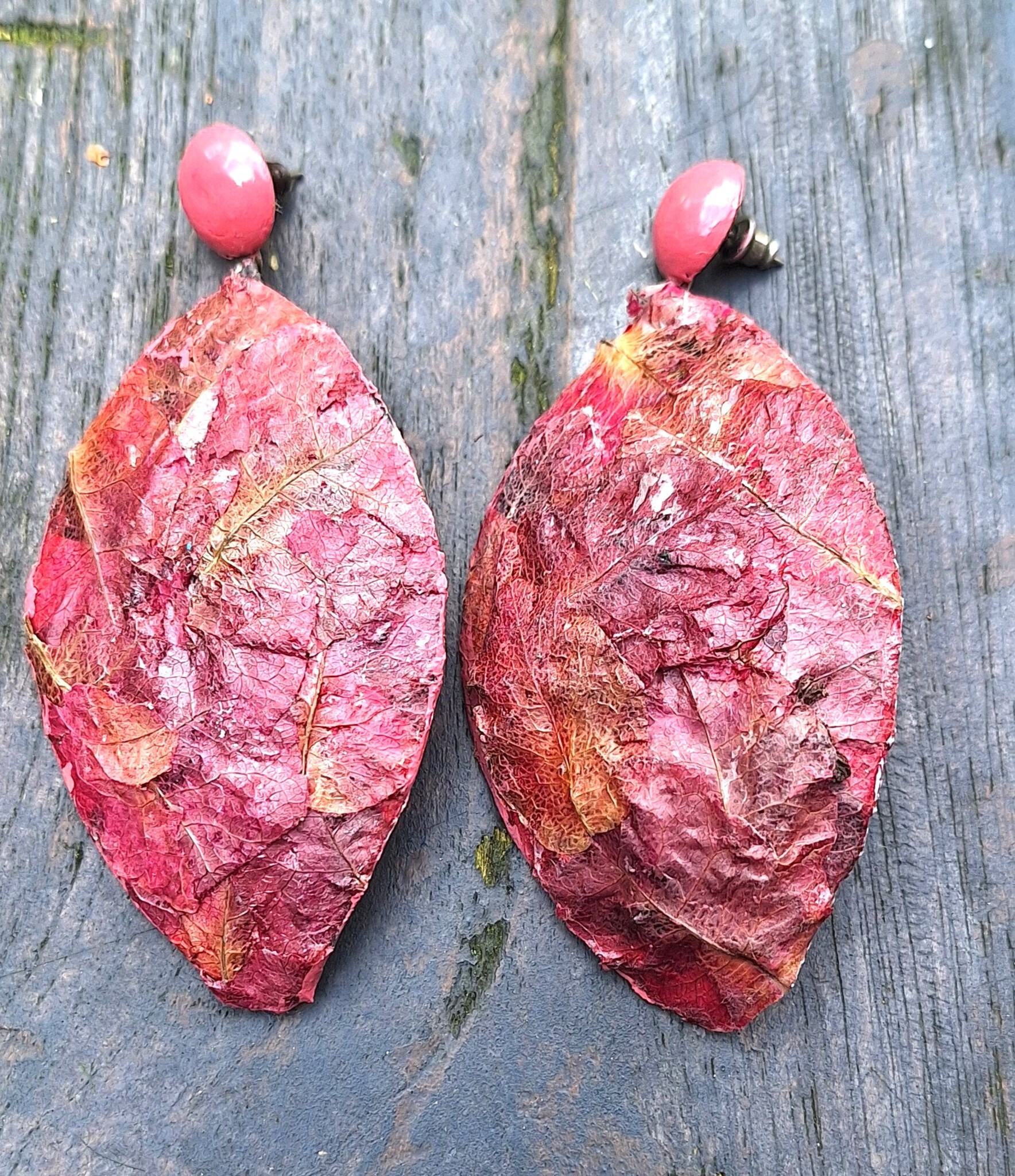Hout Van Roze Bloemblaadjes Sieraad Oorbellen Oorstekers Oorsieraad Hetty Bougaville Gool