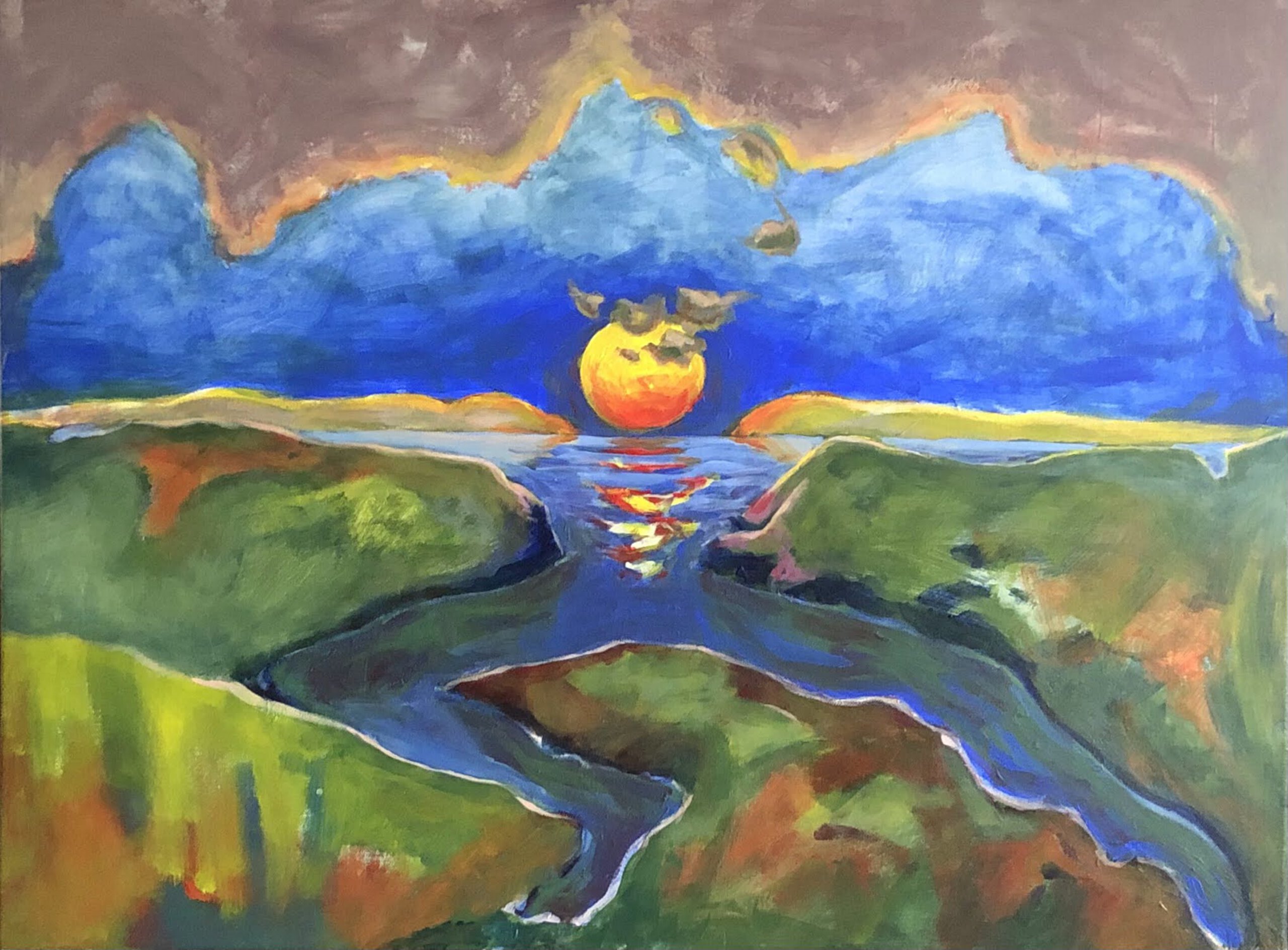 Mijn aquarellen en (acryl)schilderijen hebben vooral de natuurelementen en het menselijk lichaam als vertrekpunt. Ze lopen vaak in elkaar over: waar begint het een en eindigt het ander?