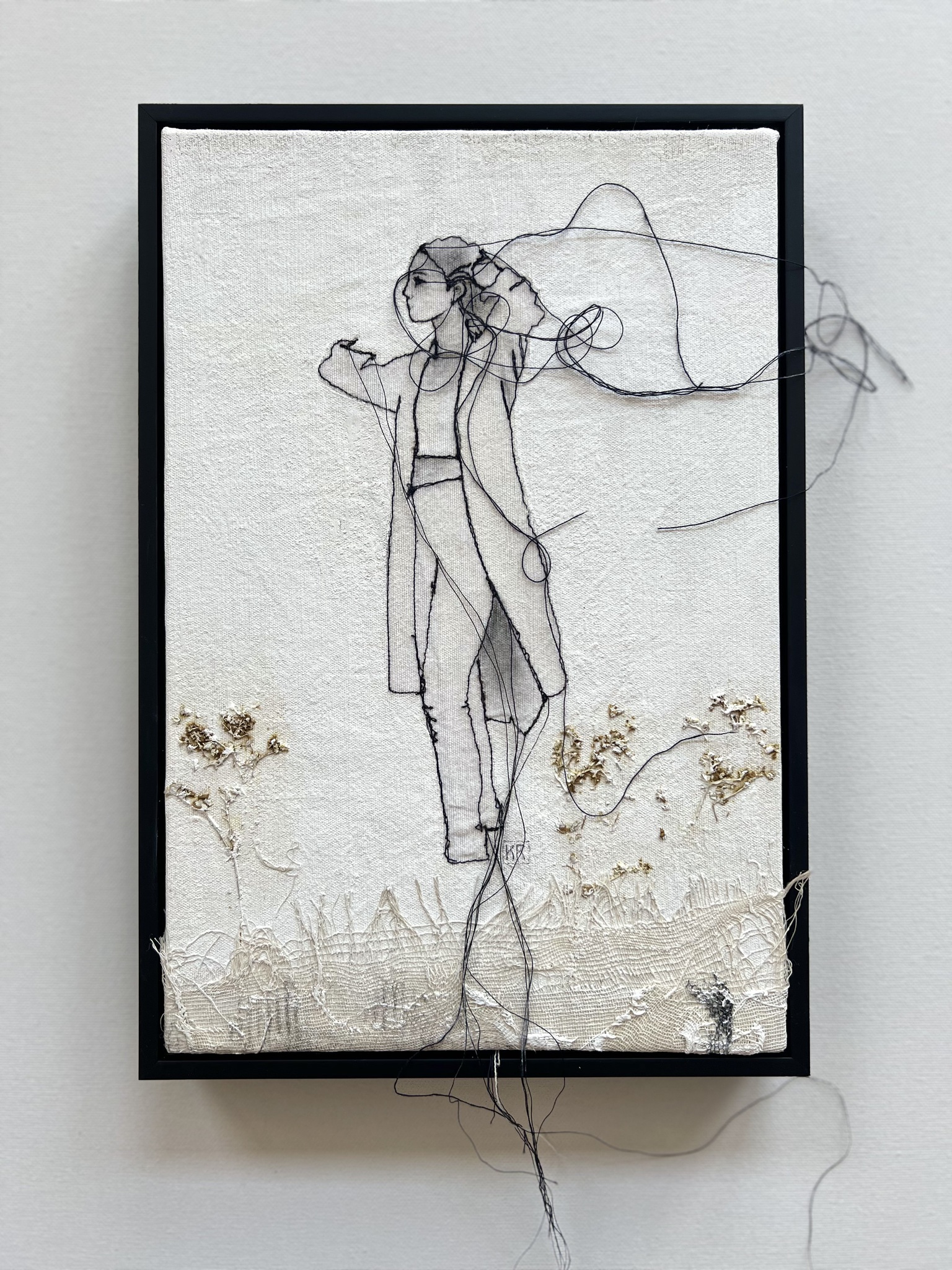 Afgestudeerd Monumentale Vormgeving aan de Academie Beeldende Kunsten Maastricht. (Maastricht Institute of Arts) Vrouwelijke figuren, sensualiteit, kracht en kwetsbaarheid in zwarte draden.