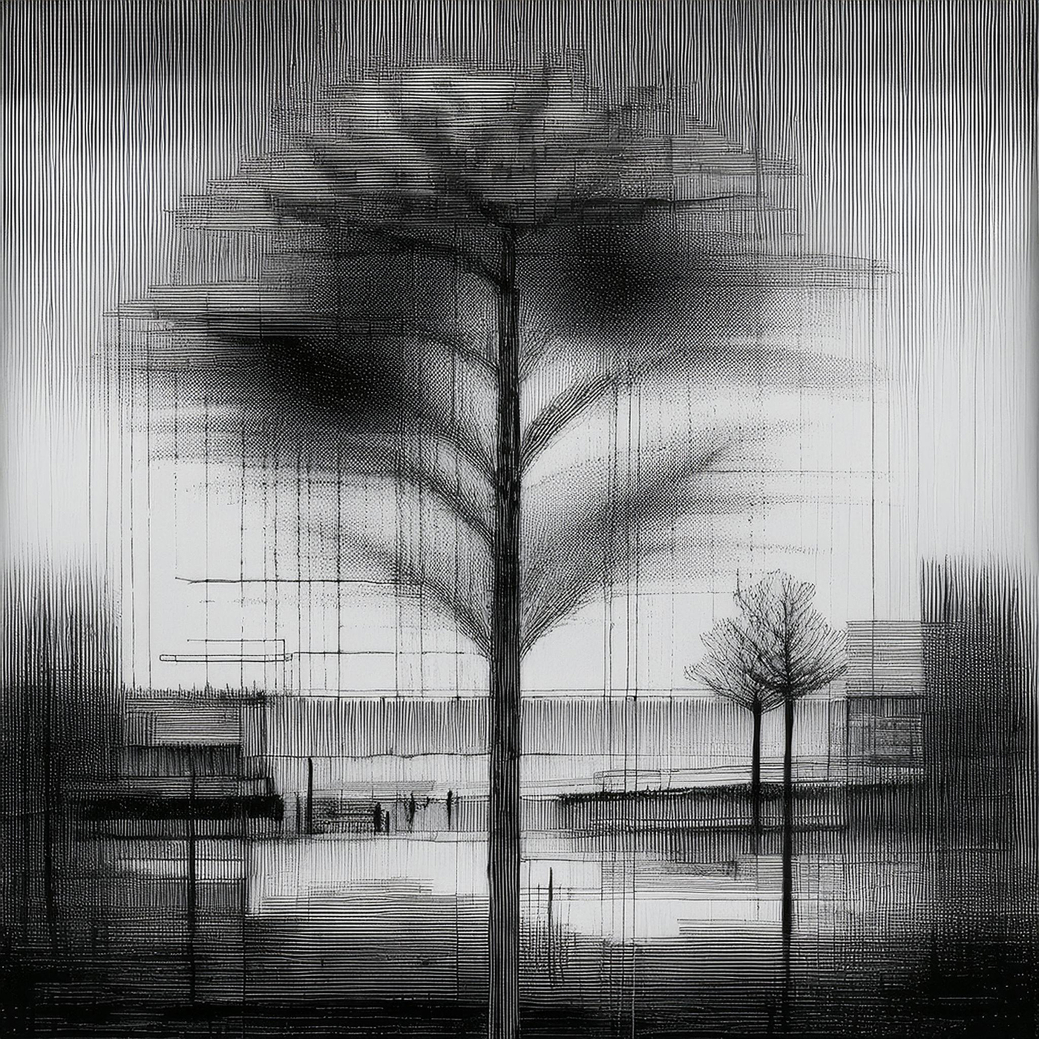 Landschap Fotografie Kunst Bomen Boom Grafiek Lijnen Zwartwit Hedendaagsekunst Klimaatverandering Ai Digitalekunst