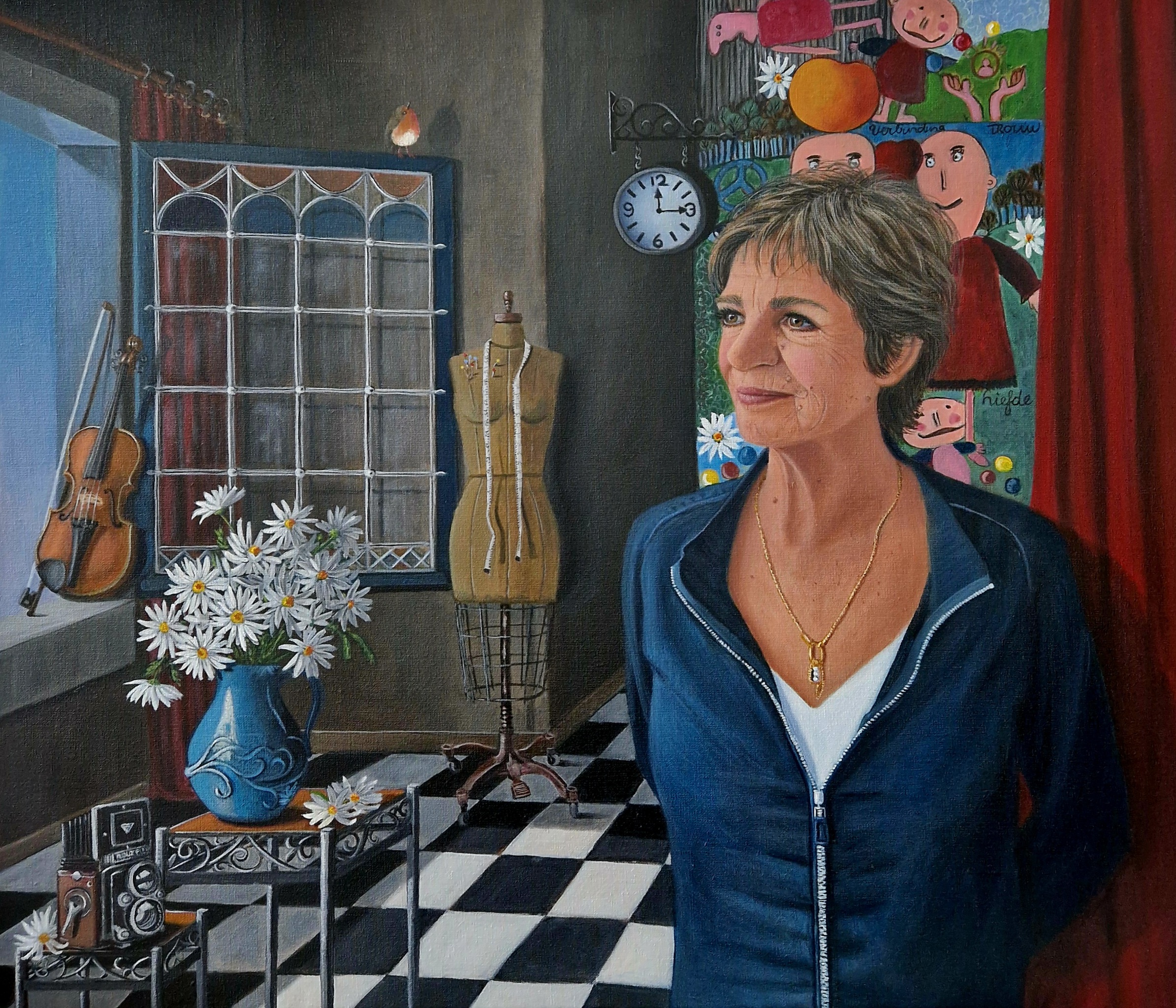 Sarah Creek schildert met acryl op canvas of linnen. Onderwerpen zijn portretten en stillevens. Sarah geeft les aan 55 talentvolle cursisten in een atelier aan huis.