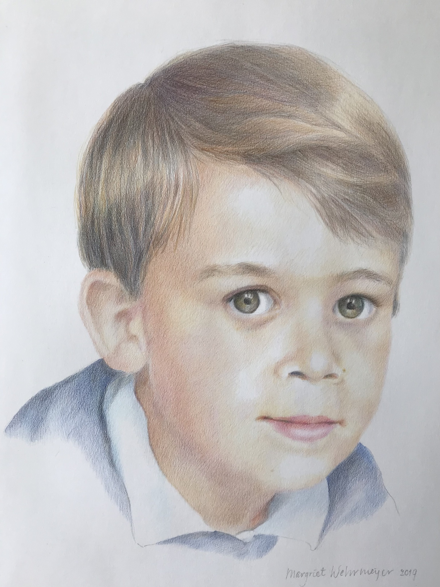 Kinderportret Olivier getekend met kleurpotlood, portret in opdracht.